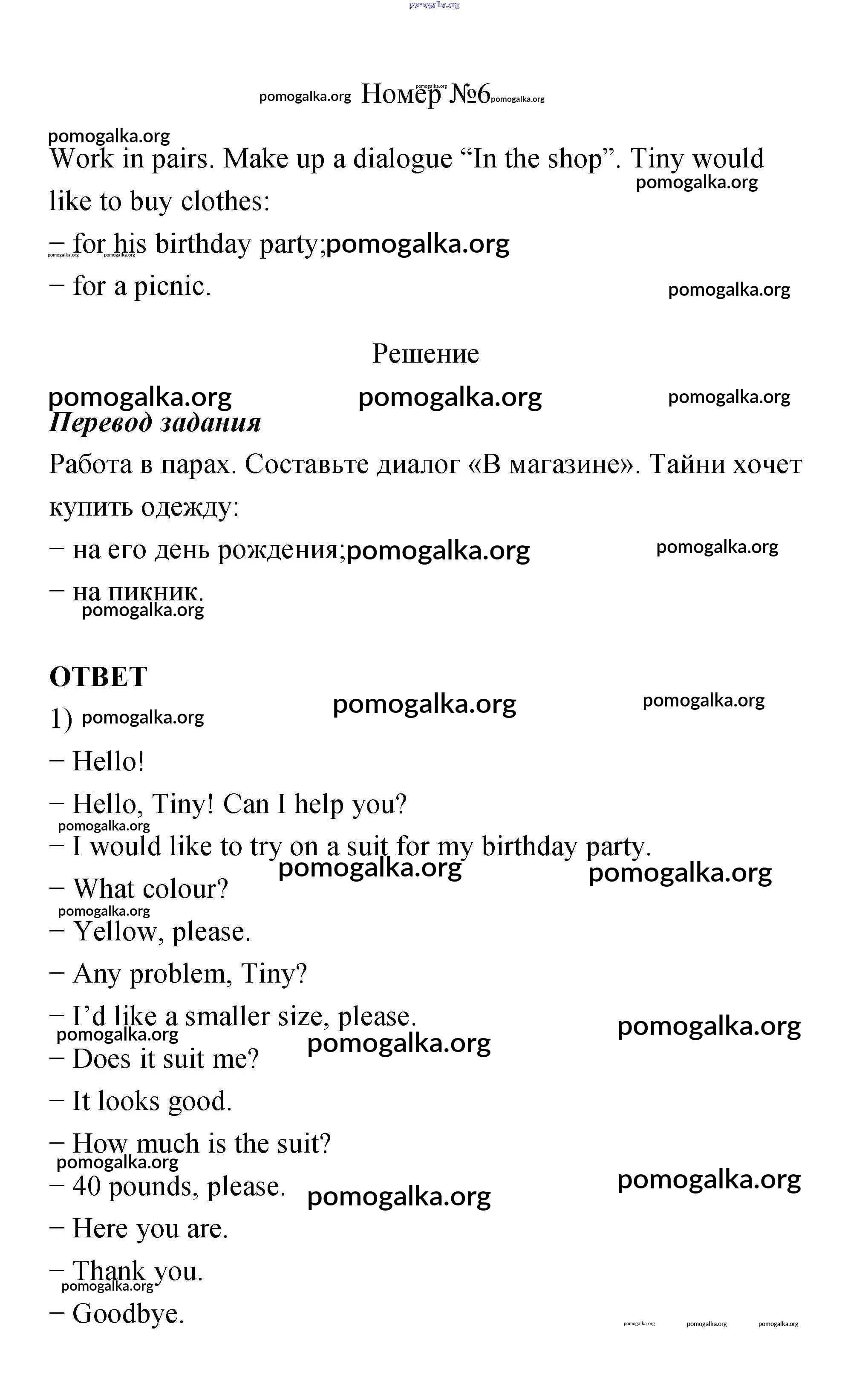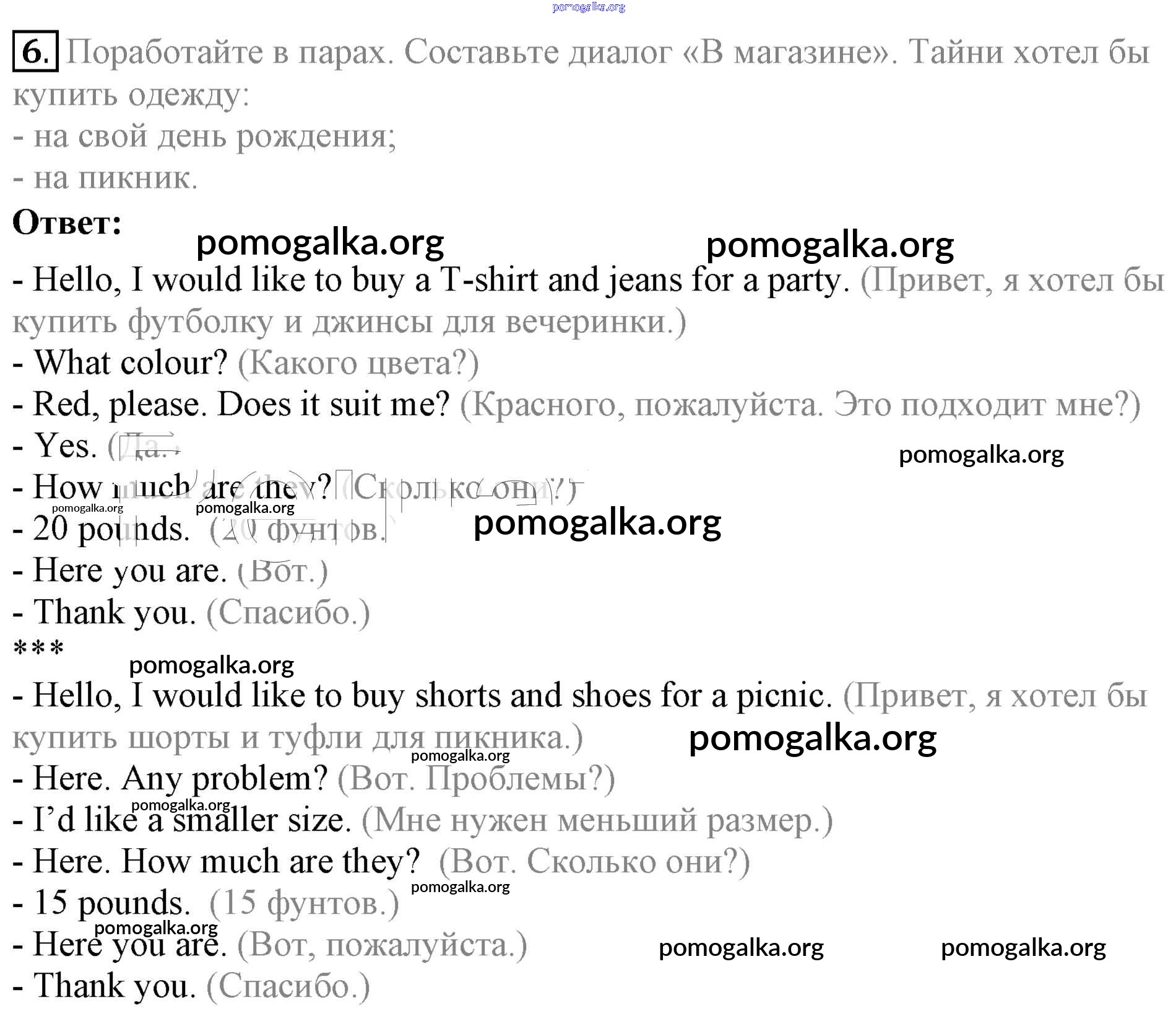 Готовые ответы - Английский язык 4 класс Биболетова - shopping For Clothes unit 6 6