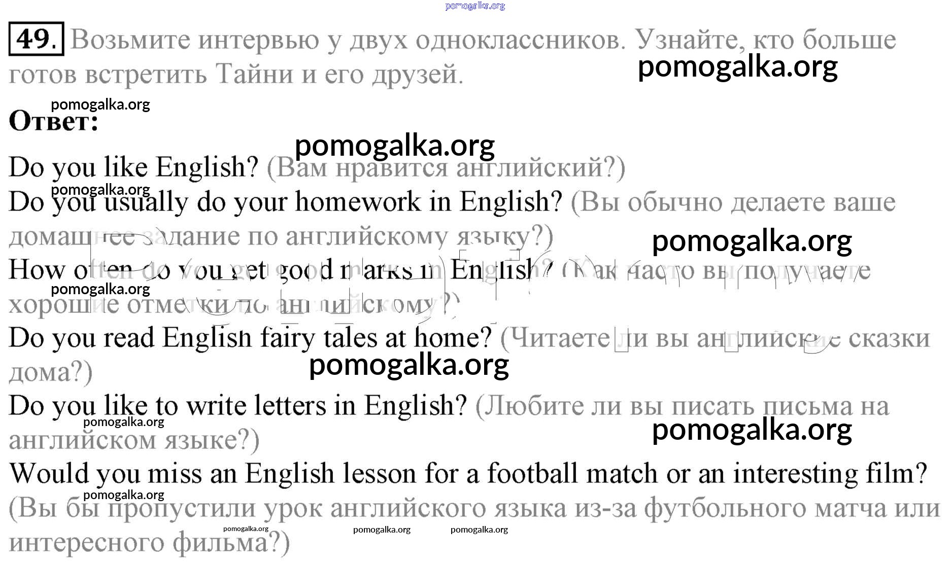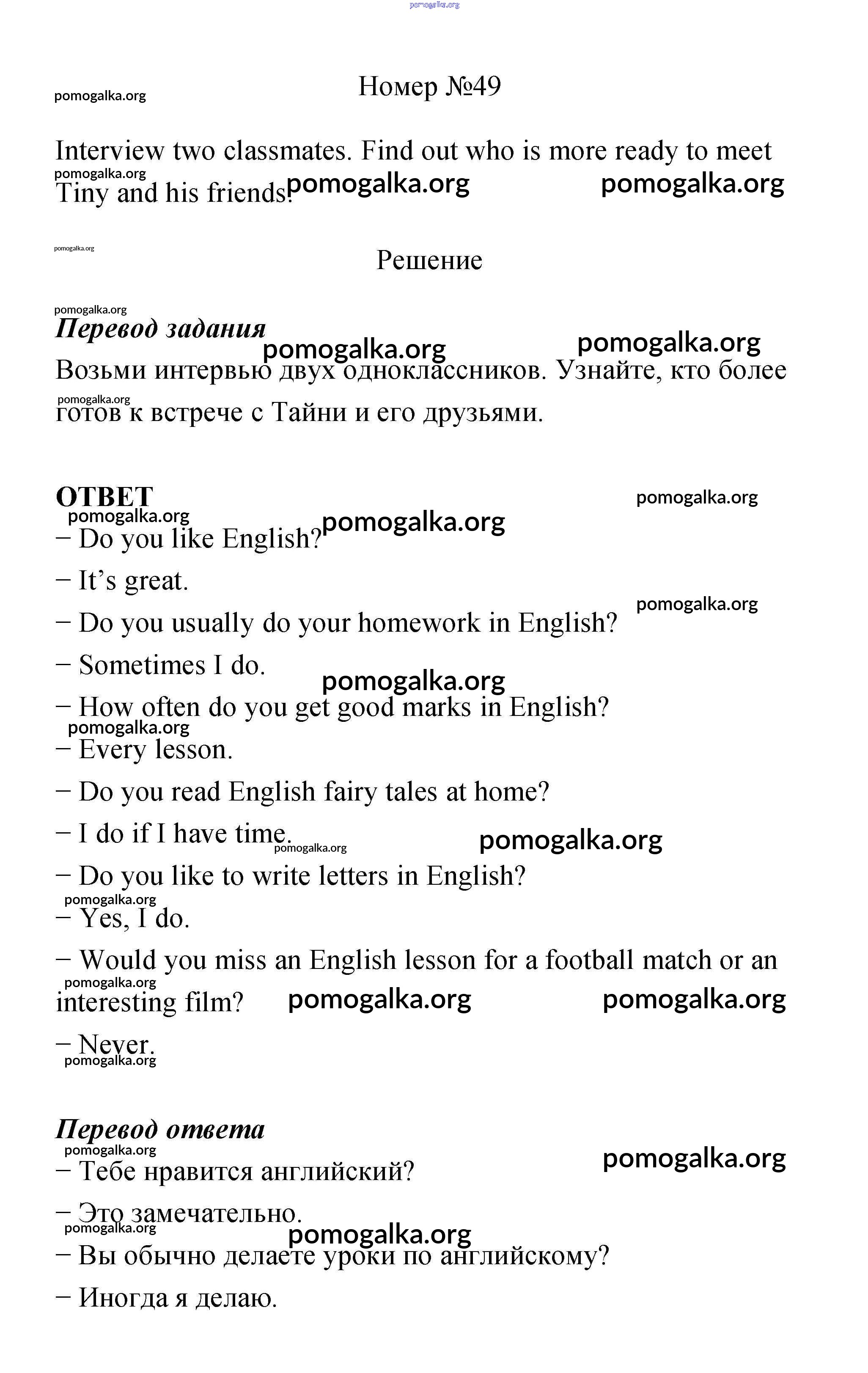 Готовые ответы - Английский язык 4 класс Биболетова - reading For Pleasure unit 7 49