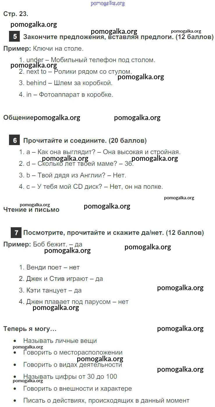 Готовые ответы - Английский язык 4 класс Spotlinght Быкова Н.И. - модуль 1 23