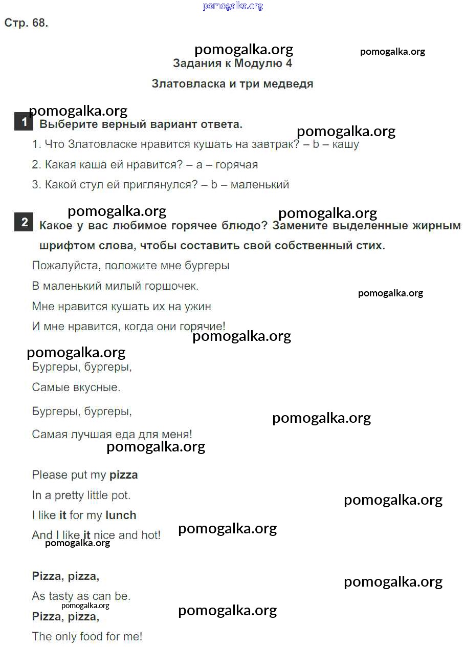 Готовые ответы - Английский язык 4 класс Spotlinght Быкова Н.И. - модуль 4 68