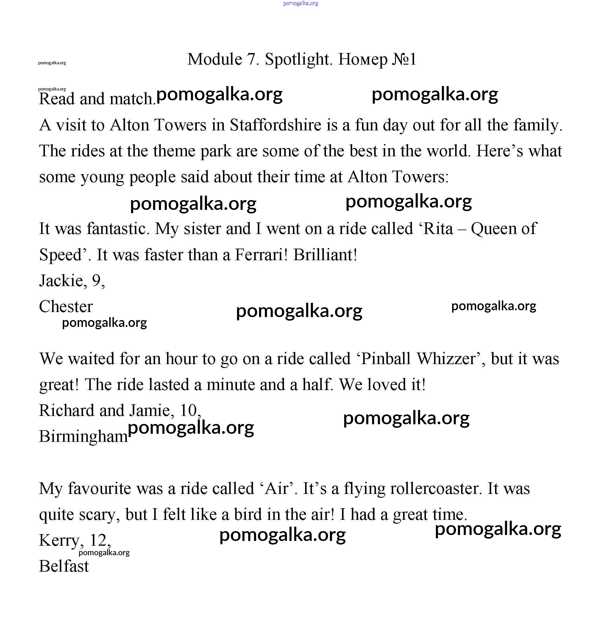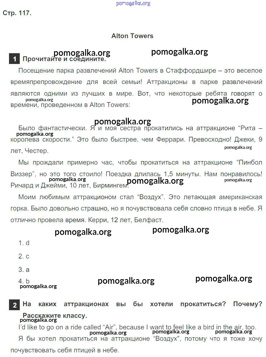 Готовые ответы - Английский язык 4 класс Spotlinght Быкова Н.И. - модуль 7 117