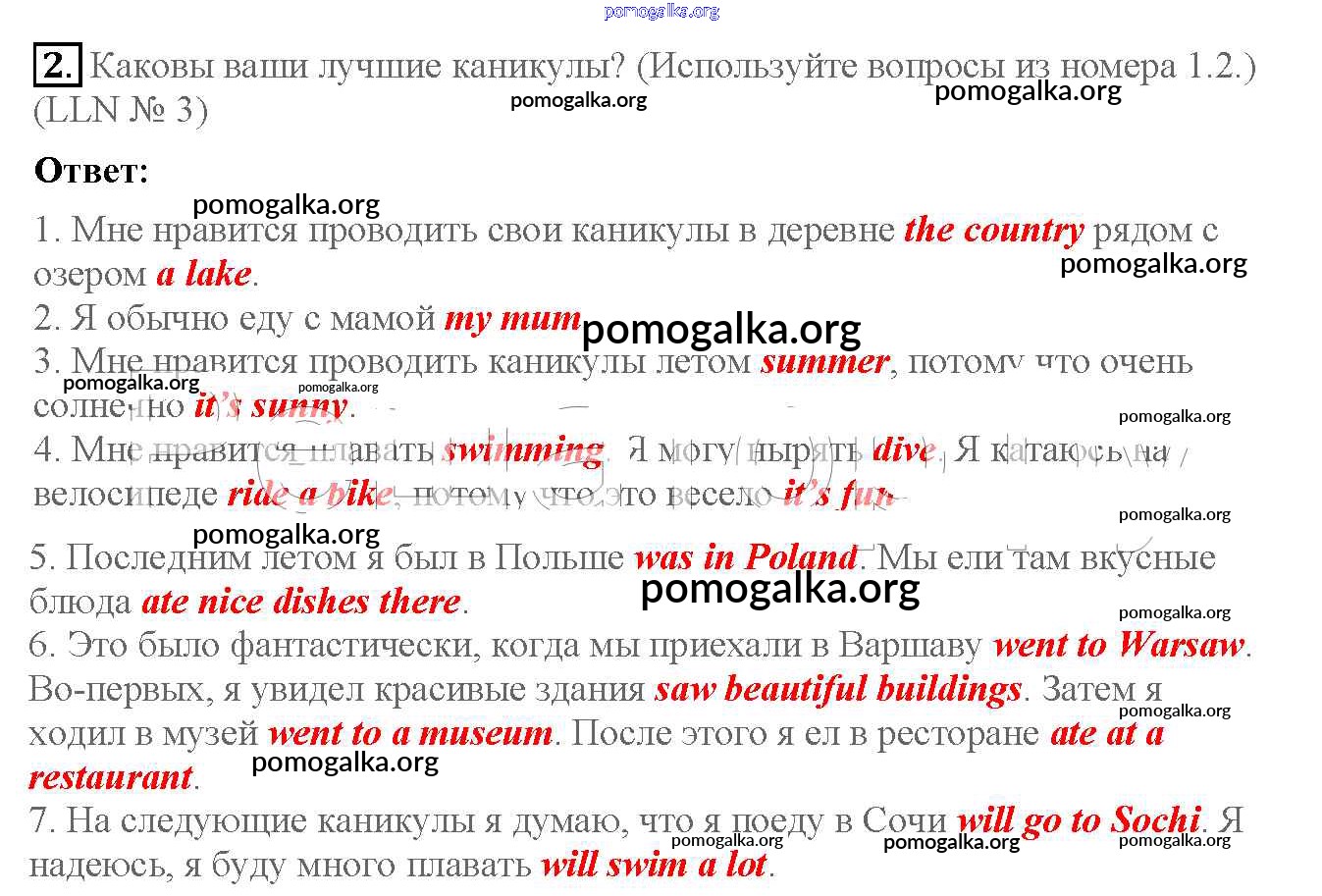 Готовые ответы - Английский язык 4 класс Кузовлев В.П. - lesson 5 unit 1 2