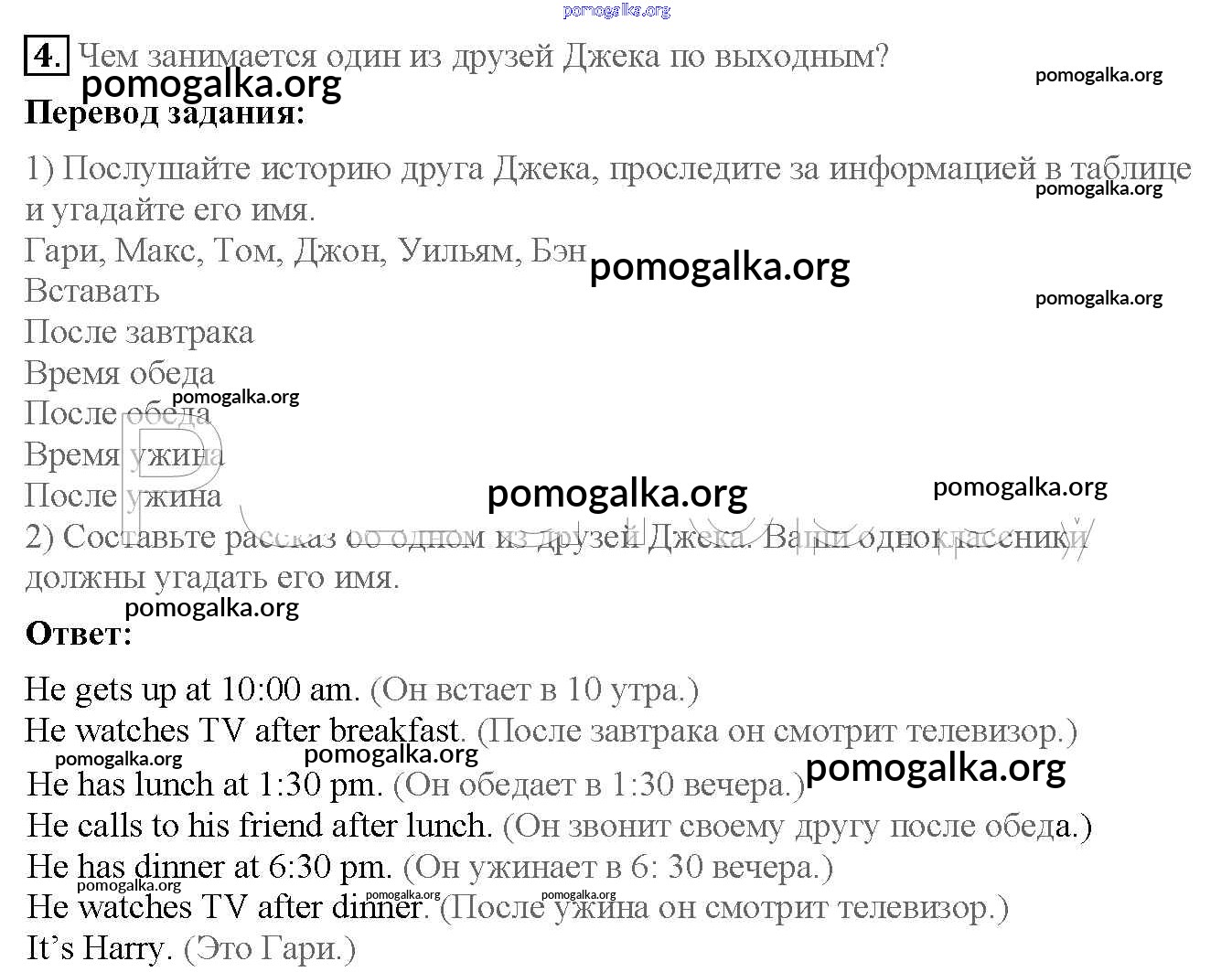 Готовые ответы - Английский язык 4 класс Кузовлев В.П. - lesson 4 unit 3 4