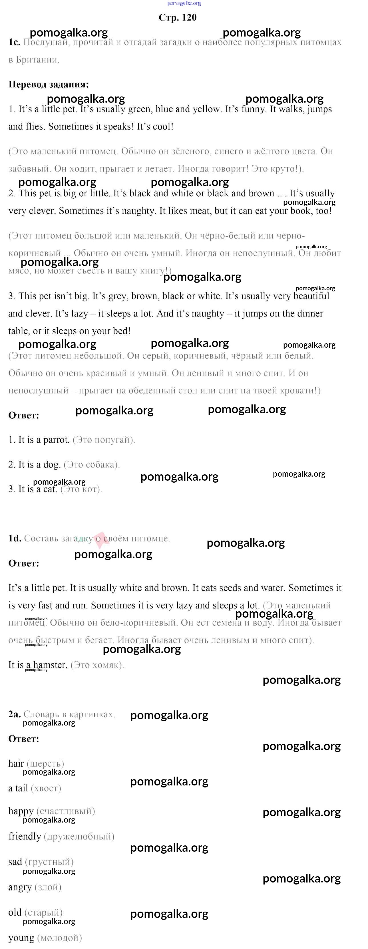 Готовые ответы - Английский язык 4 класс Лапицкая Л.М. - часть 1. страница 120