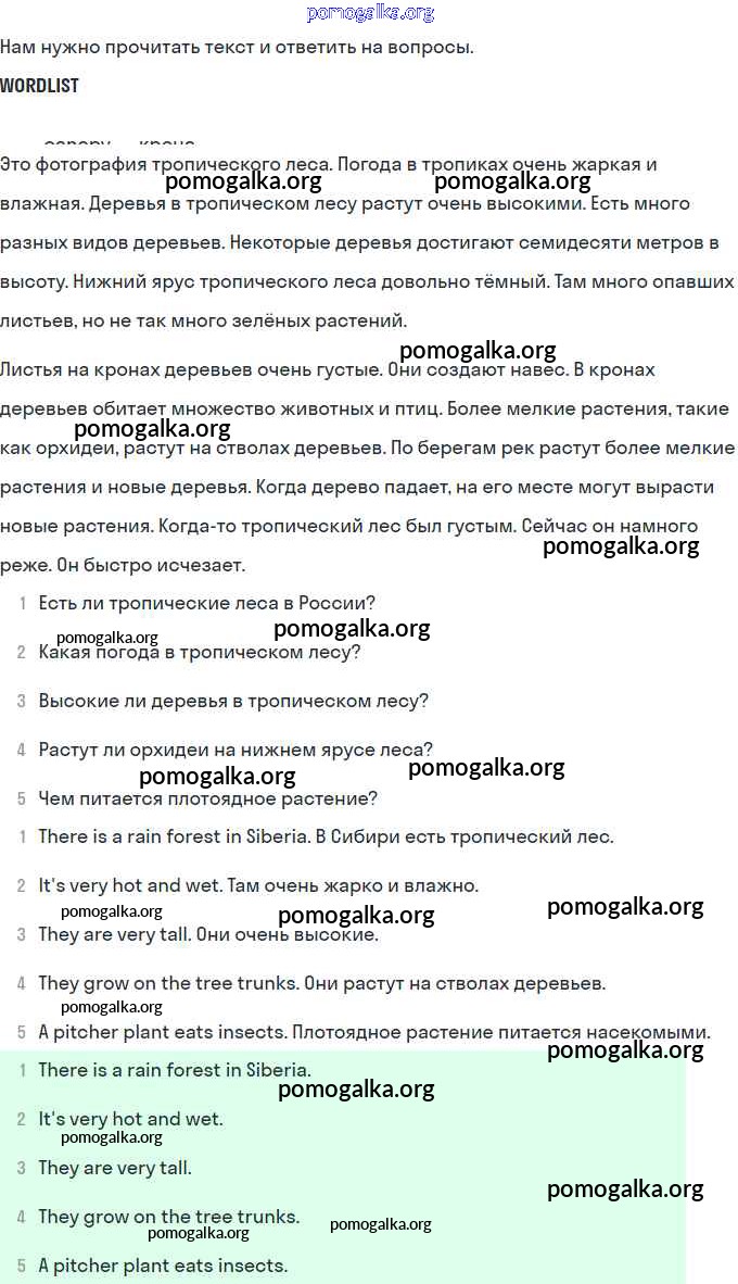 Готовые ответы - Английский язык 4 класс Вербицкая Forward - 5. what do you know about rain forests часть 1 7