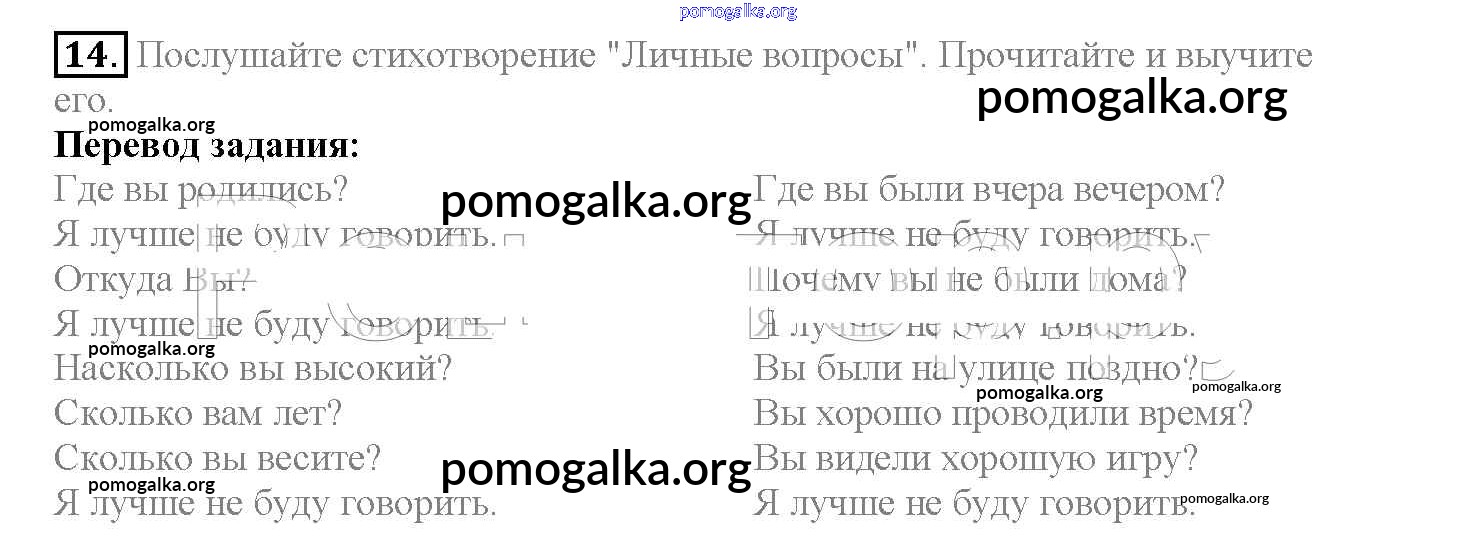 Готовые ответы - Английский язык 4 класс Верещагина - lesson 51 14