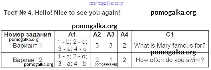 Готовые ответы - Английский язык 5 класс КИМ Лысакова Л.В. - тест 4