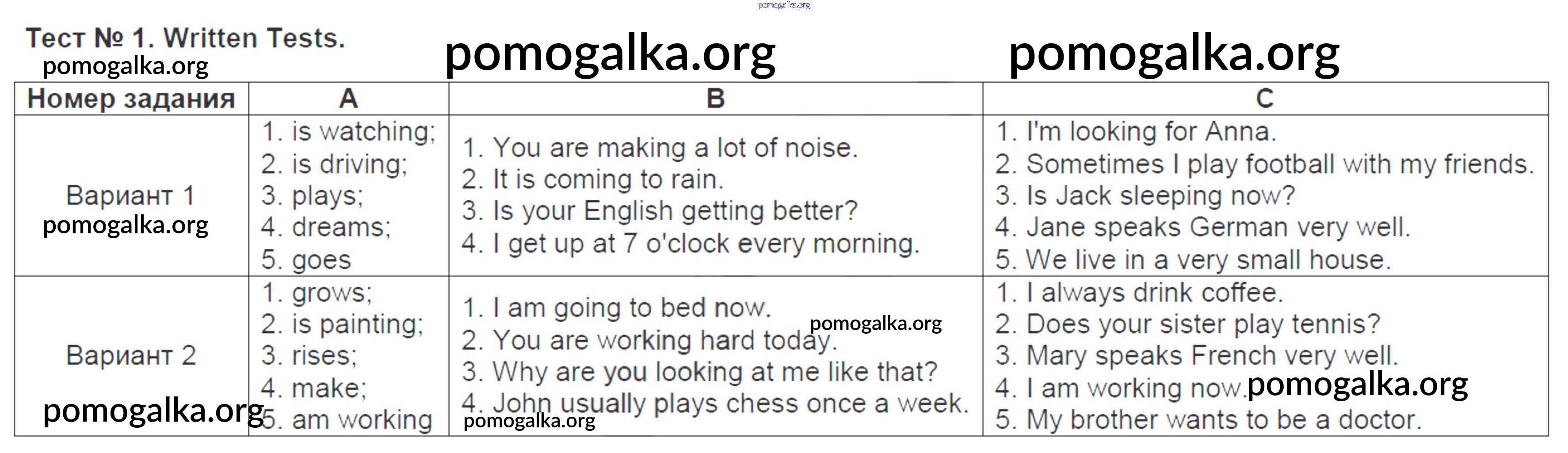 Готовые ответы - Английский язык 5 класс КИМ Лысакова Л.В. - written test 1