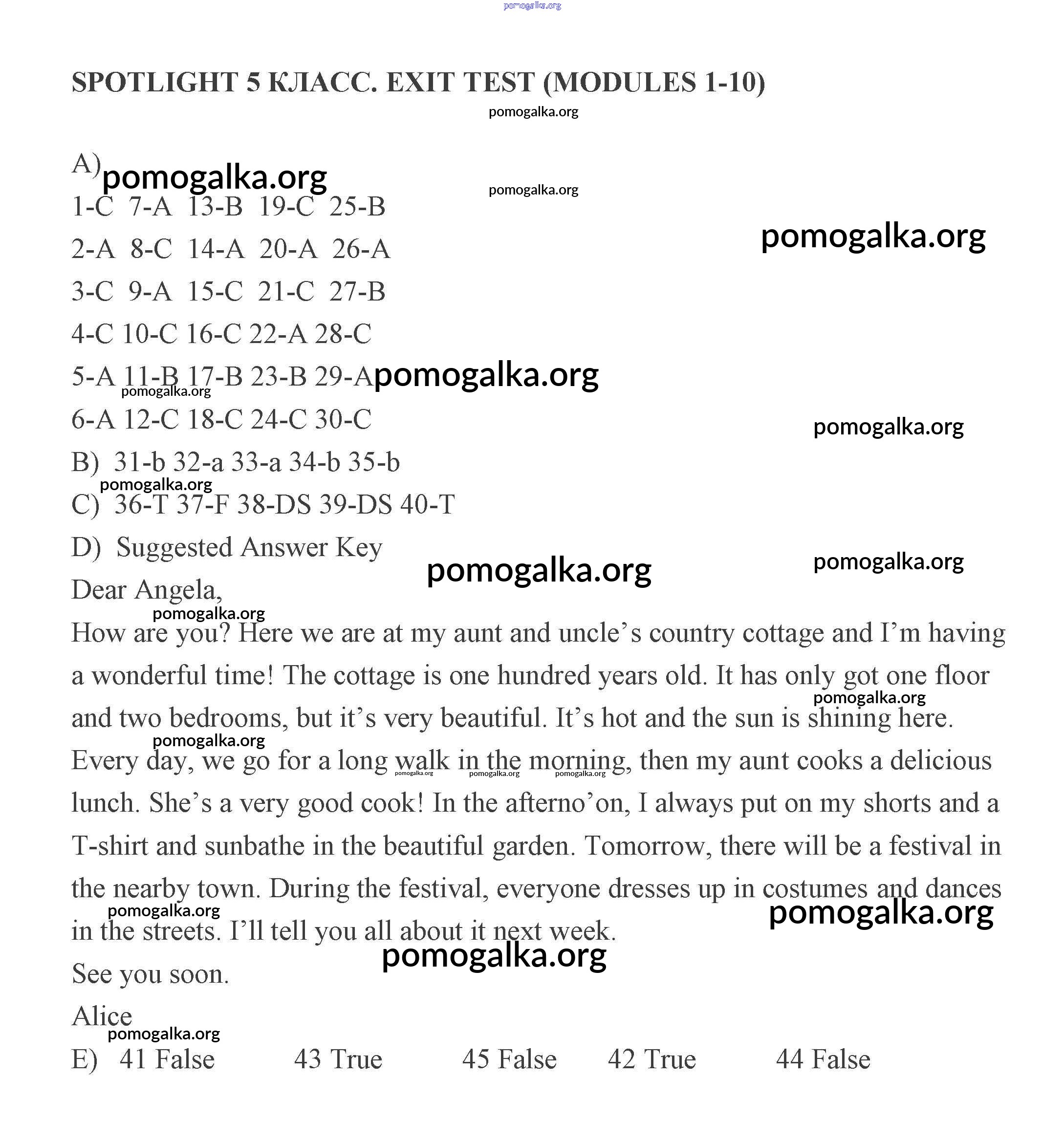 Готовые ответы - Английский язык 5 класс контрольные задания Ваулина Spotlight - итоговый тест Exit test