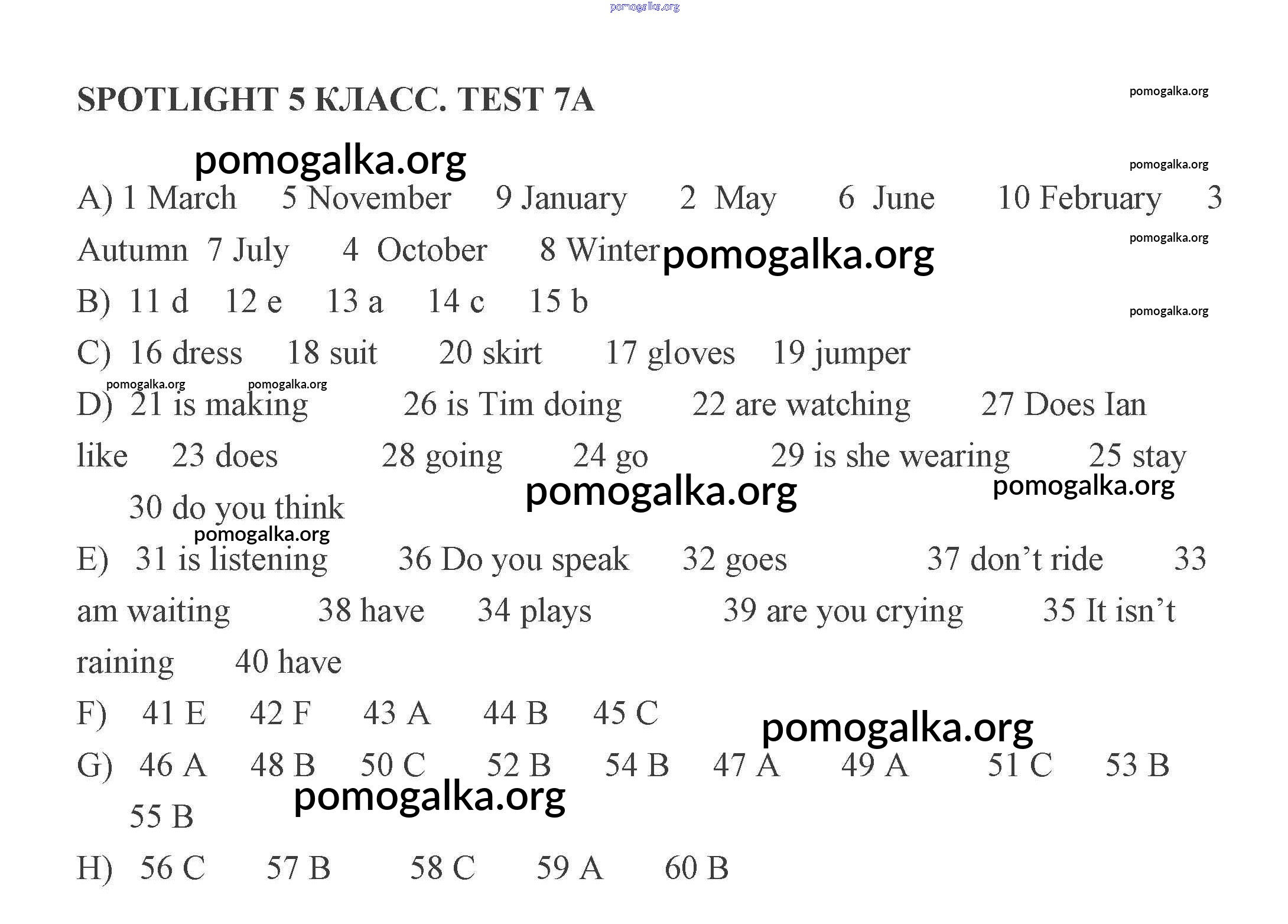 Готовые ответы - Английский язык 5 класс контрольные задания Ваулина Spotlight - тест 7 7A