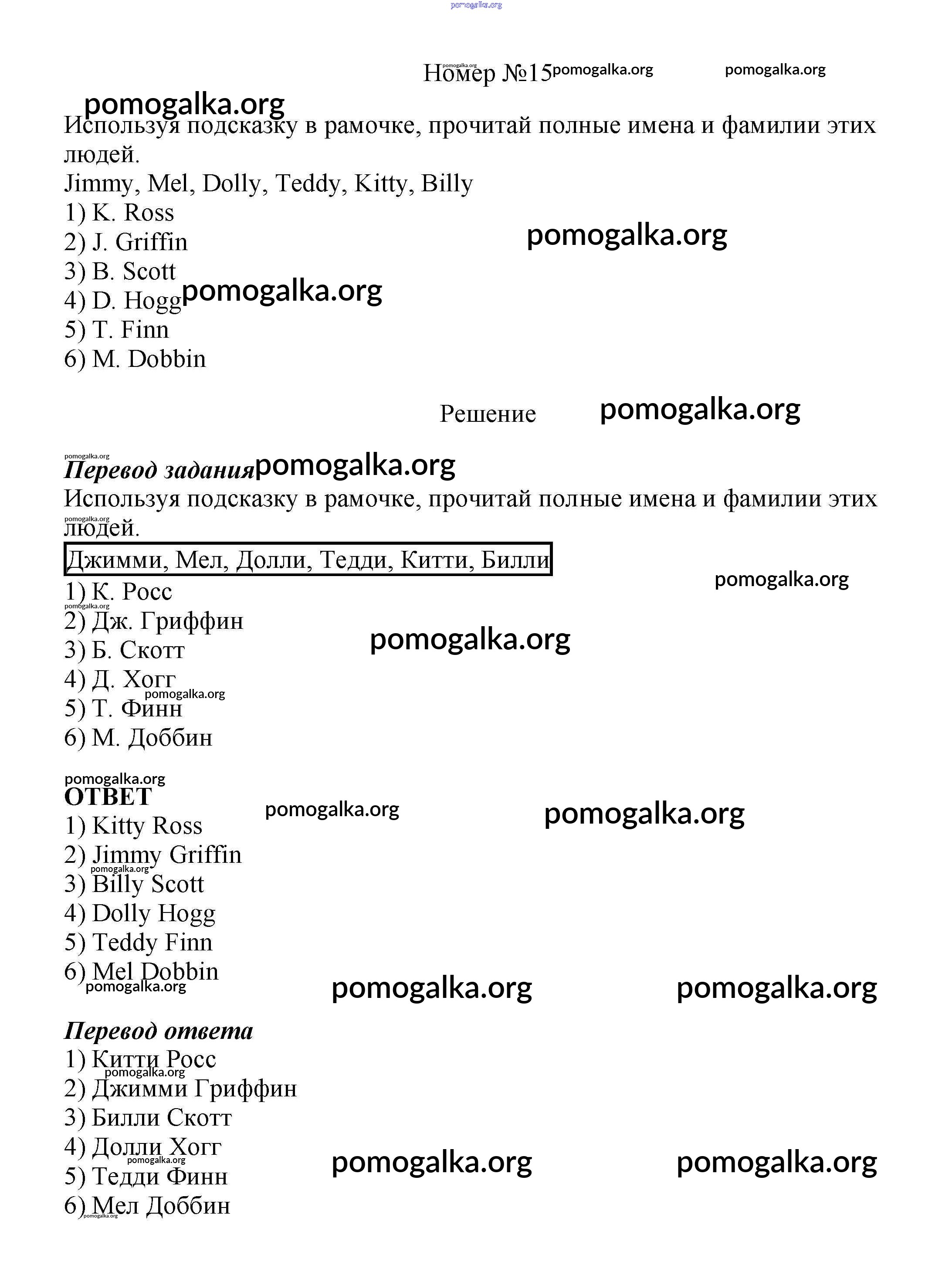 Готовые ответы - Английский язык как второй иностранный 5 класс рабочая тетрадь Афанасьева О.В. - unit 1 15
