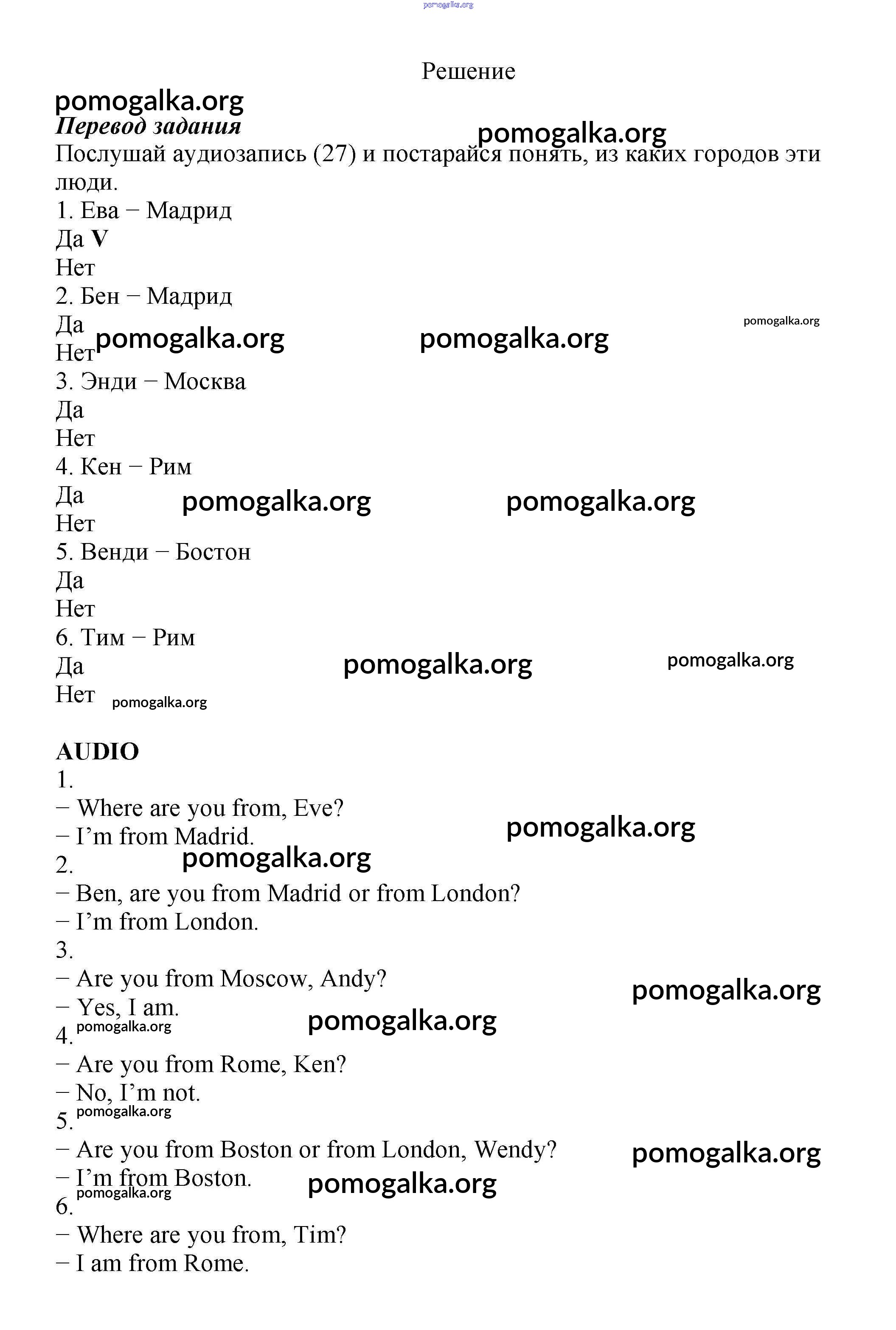Готовые ответы - Английский язык как второй иностранный 5 класс рабочая тетрадь Афанасьева О.В. - unit 4 1