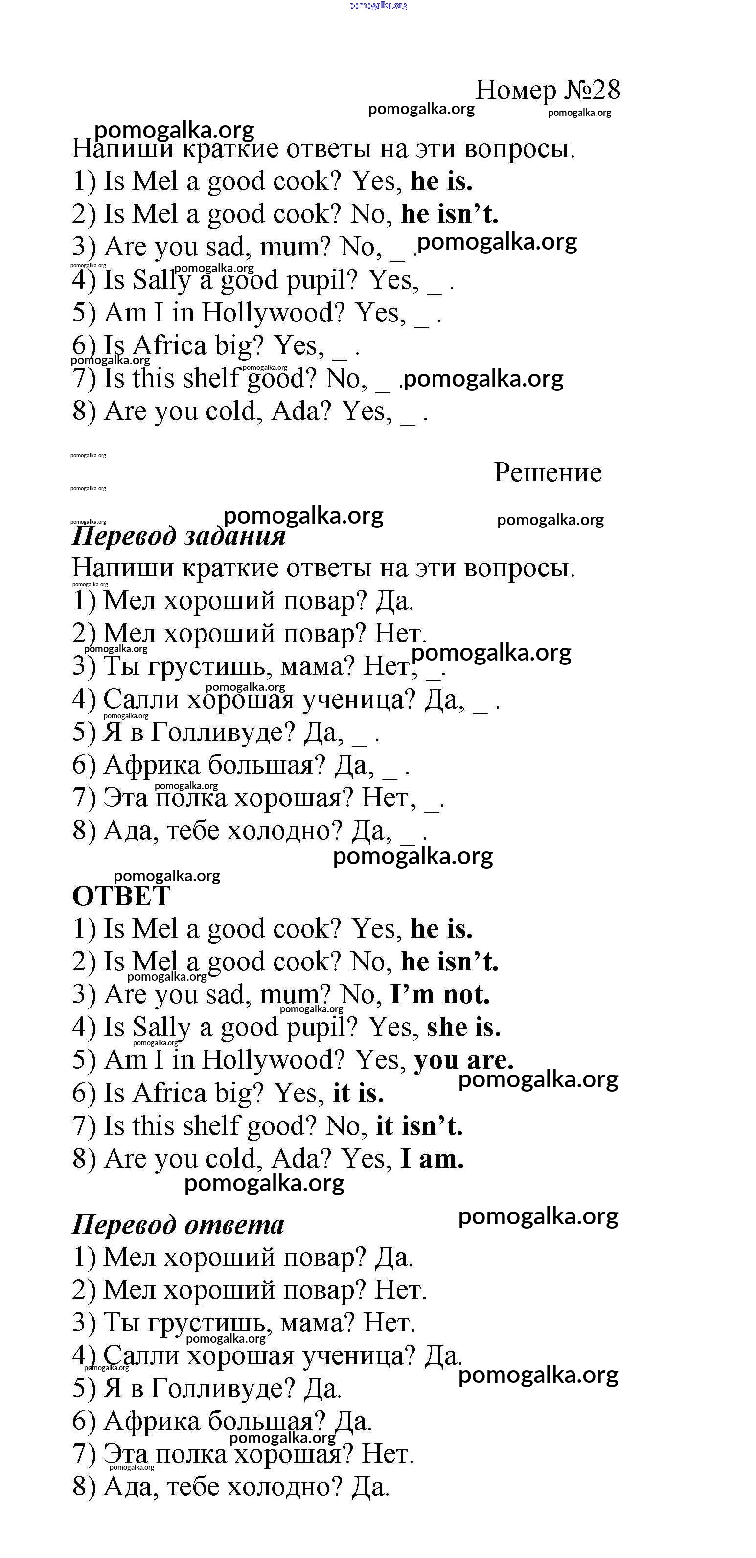 Готовые ответы - Английский язык как второй иностранный 5 класс рабочая тетрадь Афанасьева О.В. - unit 4 28