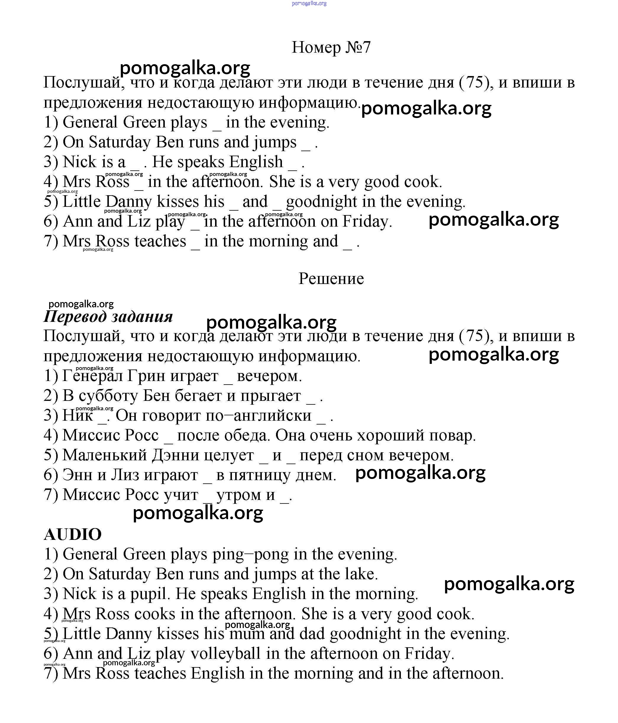 Готовые ответы - Английский язык как второй иностранный 5 класс рабочая тетрадь Афанасьева О.В. - unit 8 7