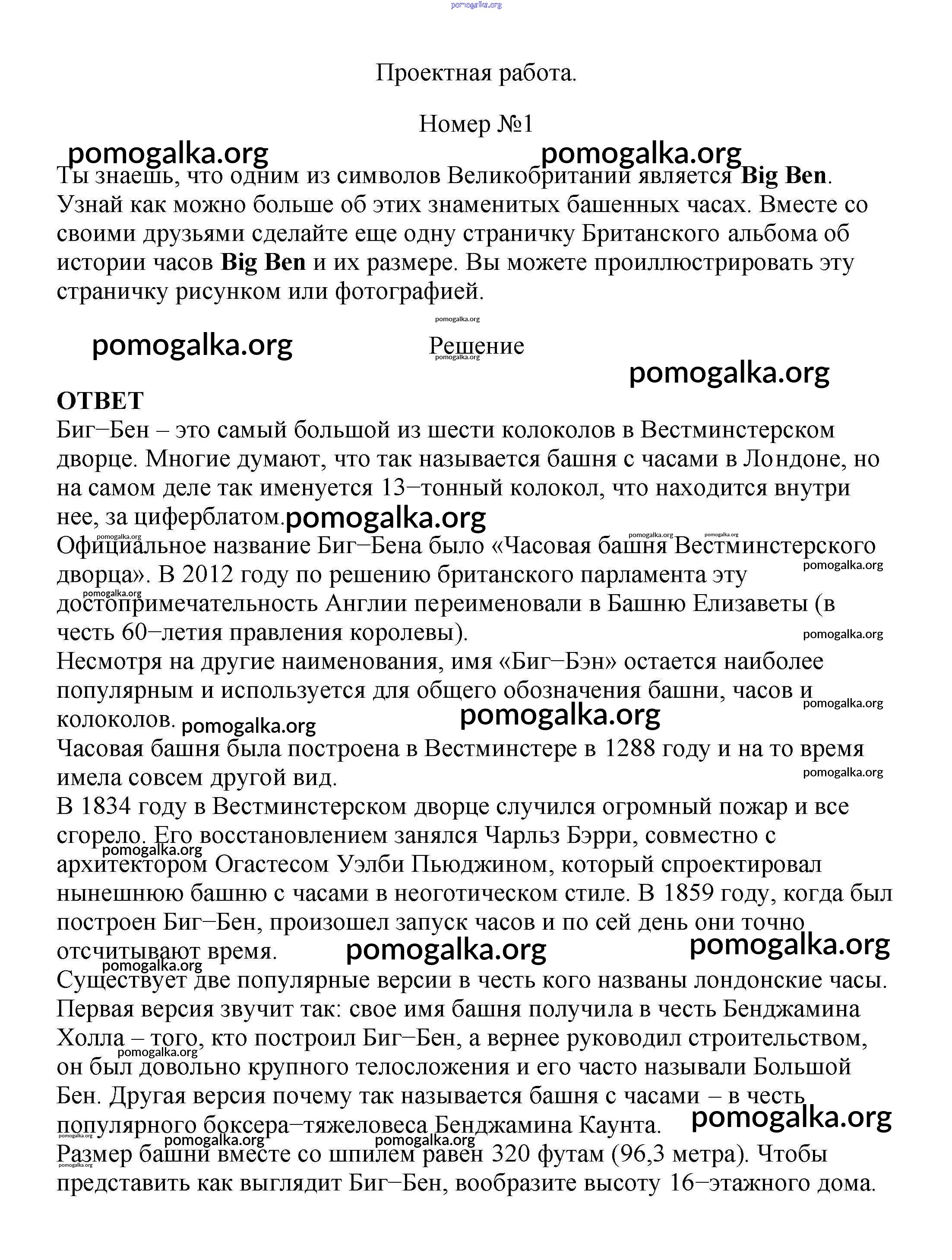 Готовые ответы - Английский язык как второй иностранный 5 класс рабочая тетрадь Афанасьева О.В. - unit 5 проектные работы 1