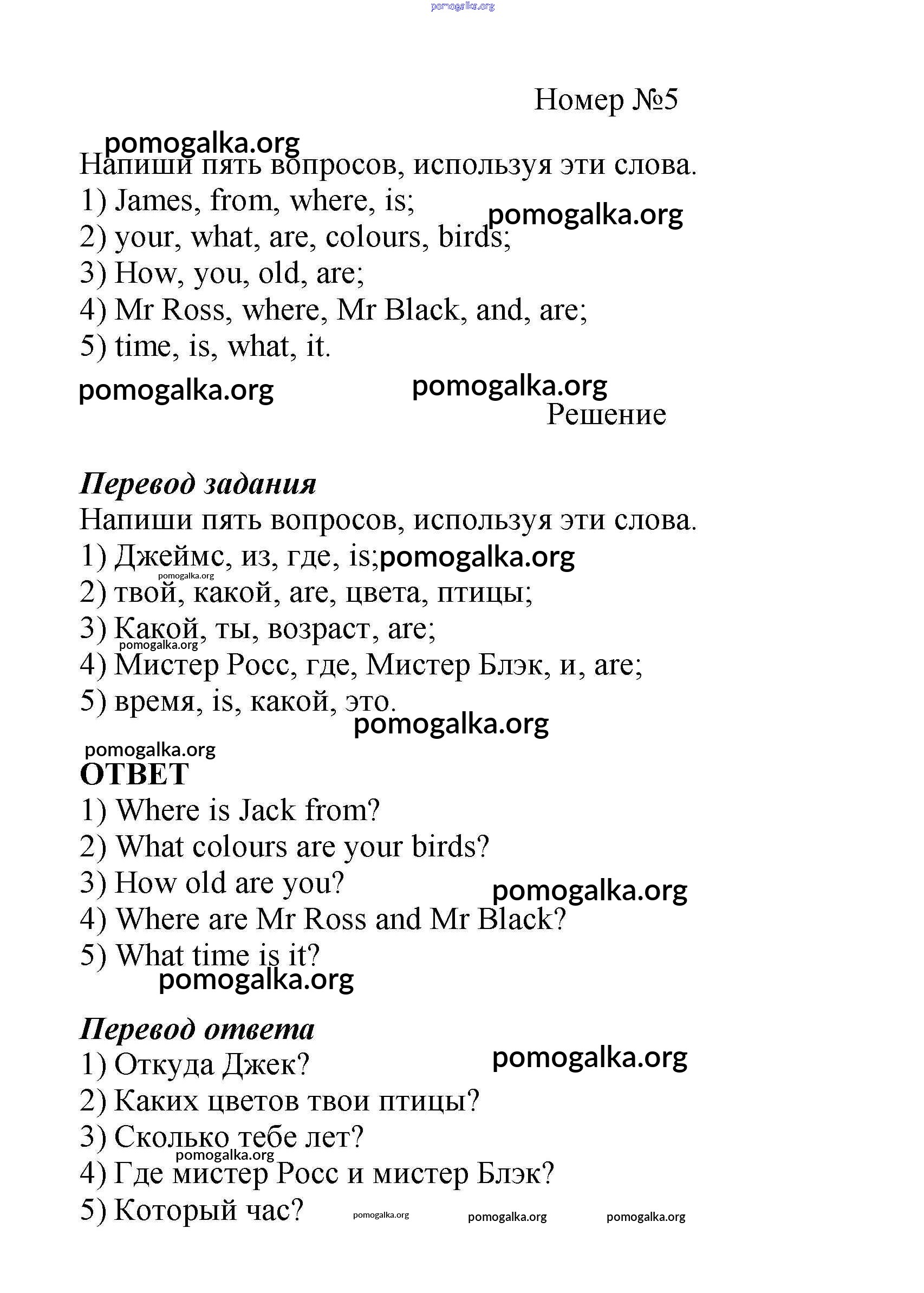 Готовые ответы - Английский язык как второй иностранный 5 класс рабочая тетрадь Афанасьева О.В. - unit 6 контрольные задания 5