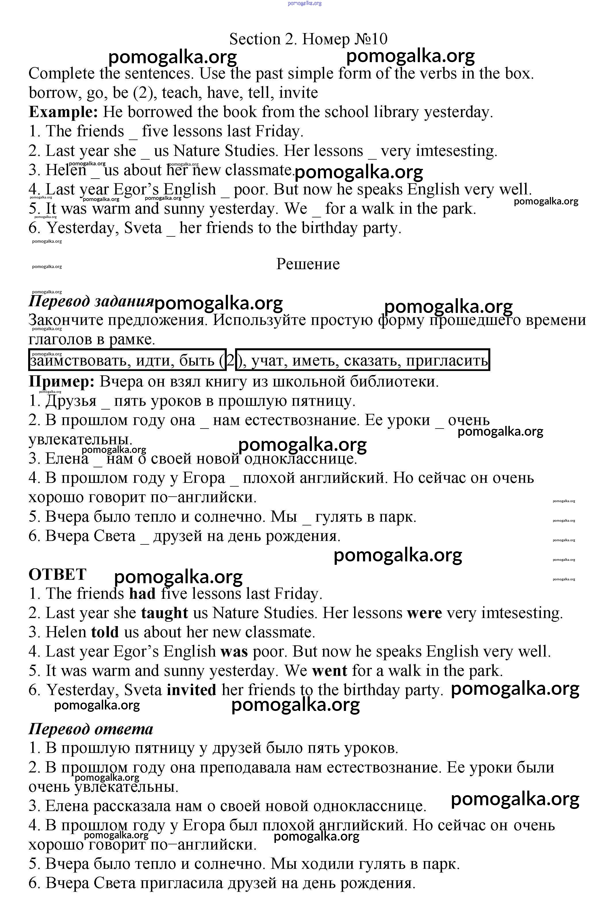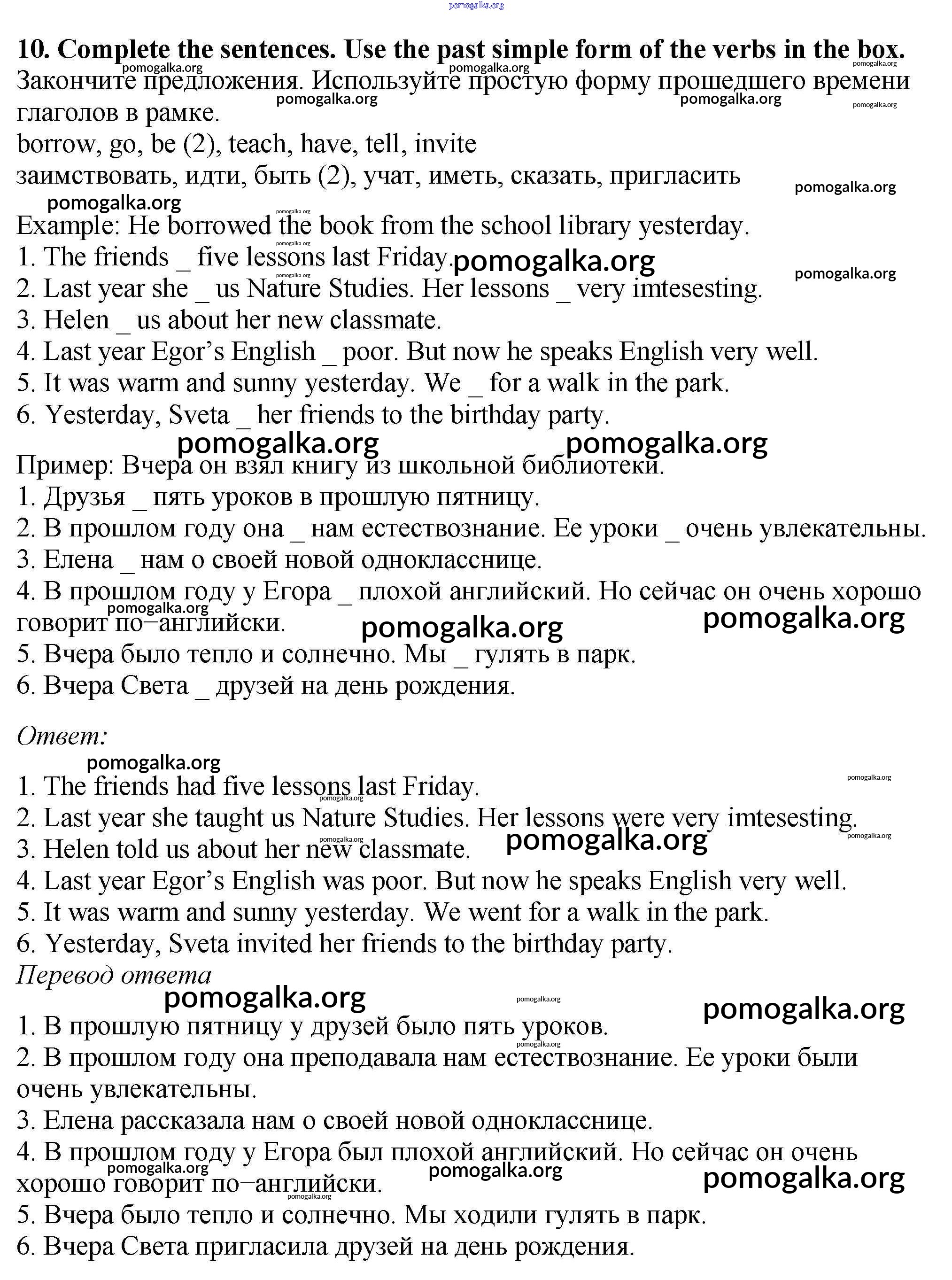 Готовые ответы - Английский язык 5 класс рабочая тетрадь Enjoy English Биболетова М.З. - exercise unit 1 10