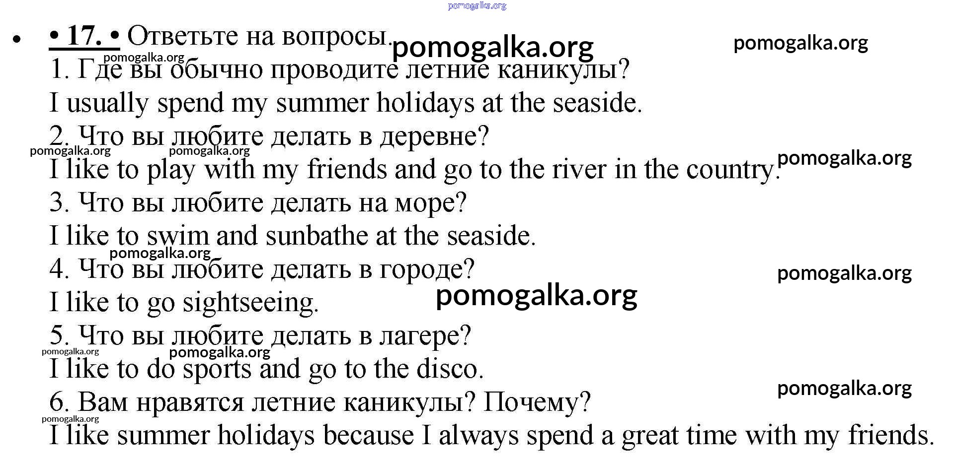 Готовые ответы - Английский язык 5 класс рабочая тетрадь Enjoy English Биболетова М.З. - exercise unit 1 17