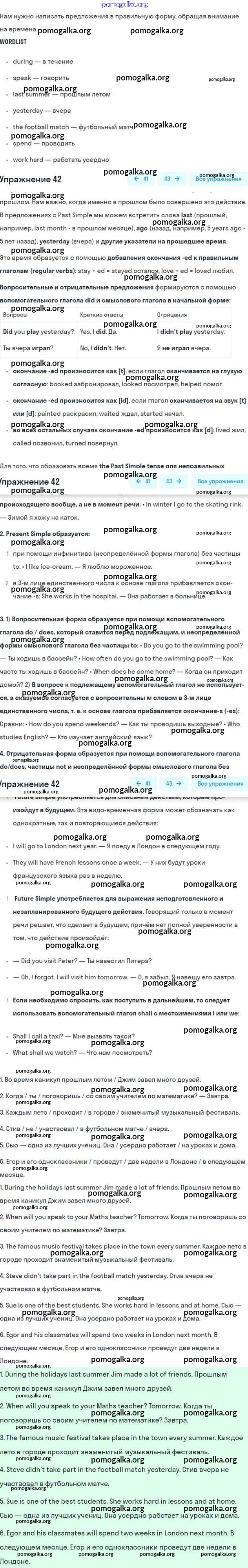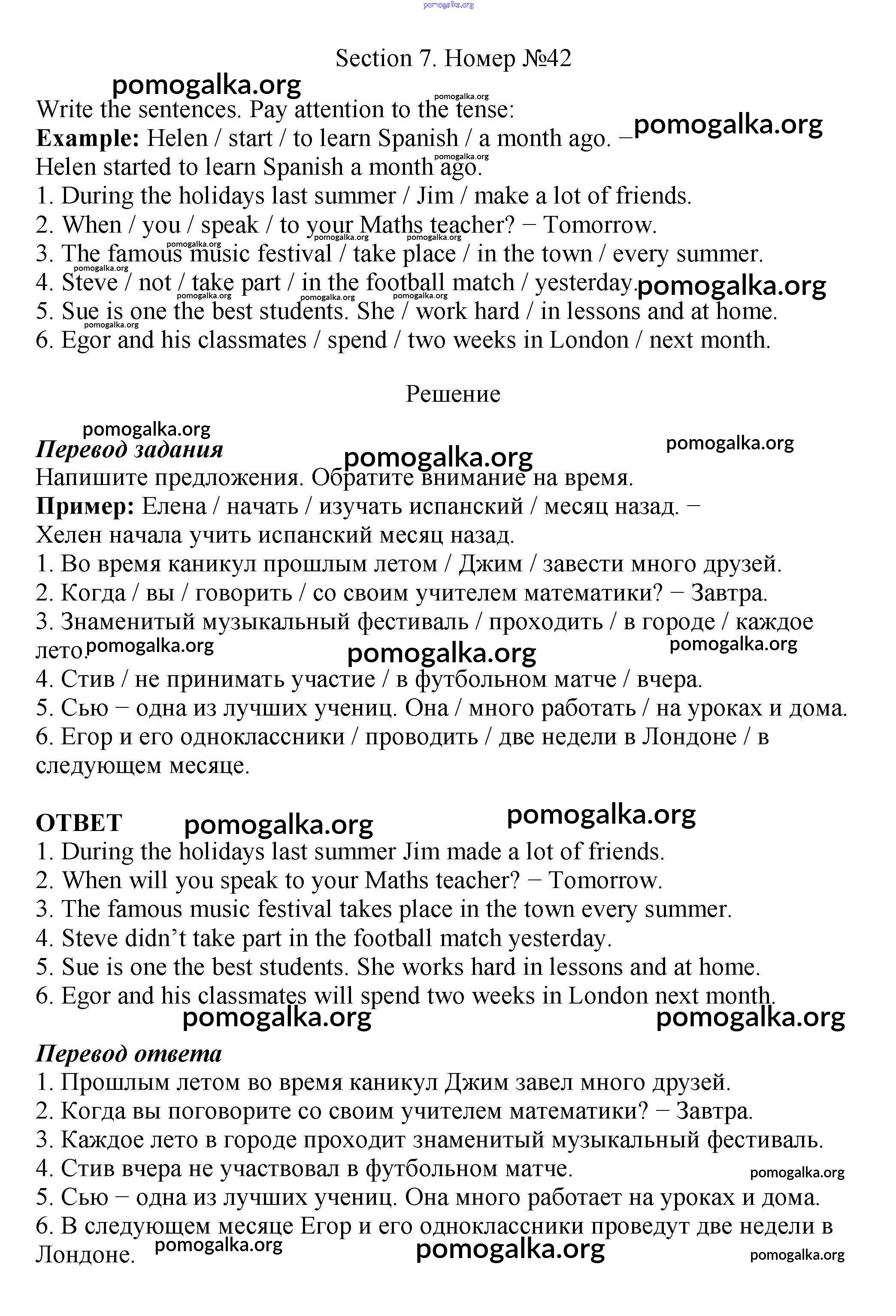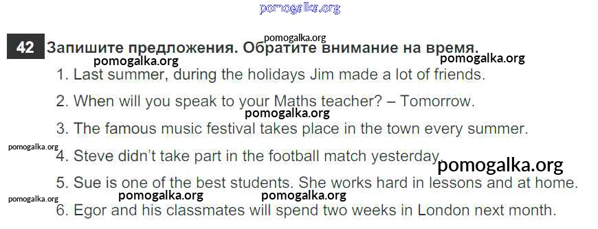 Готовые ответы - Английский язык 5 класс рабочая тетрадь Enjoy English Биболетова М.З. - exercise unit 1 42