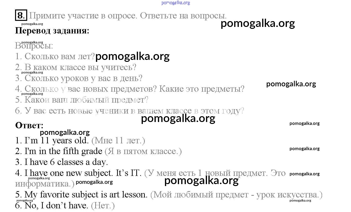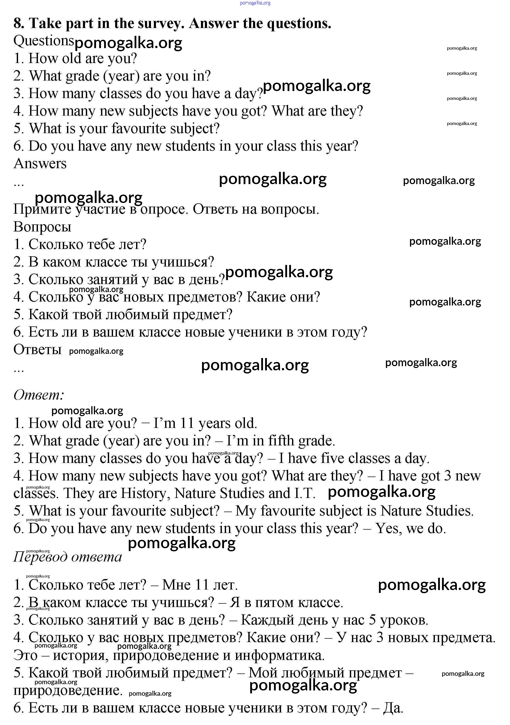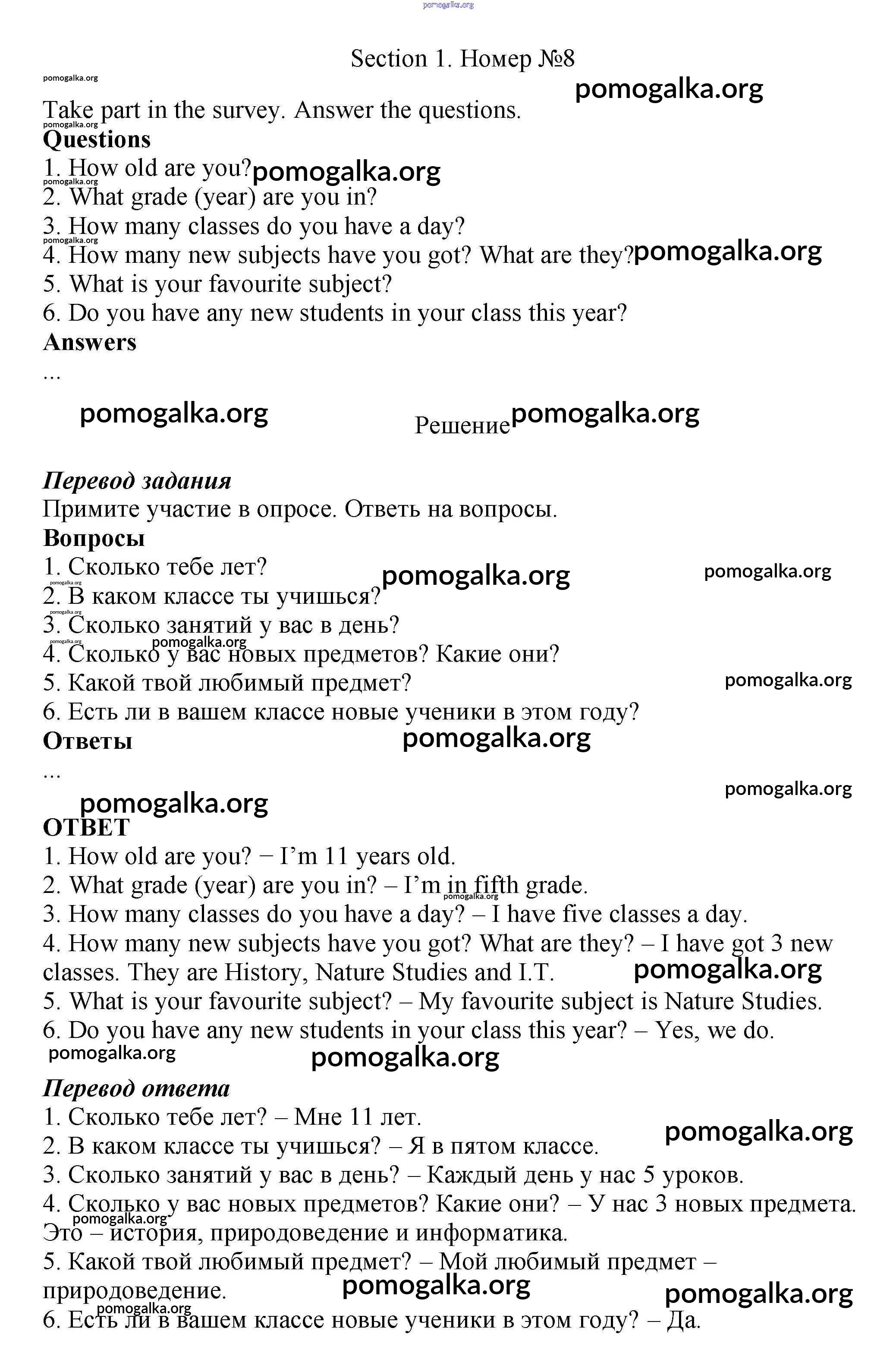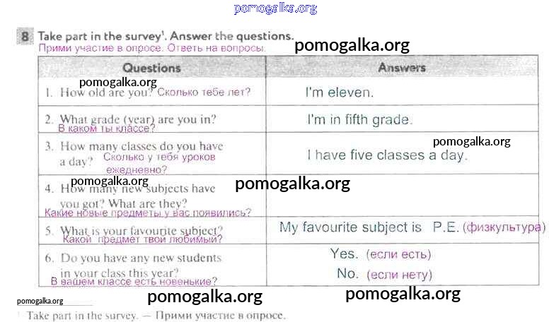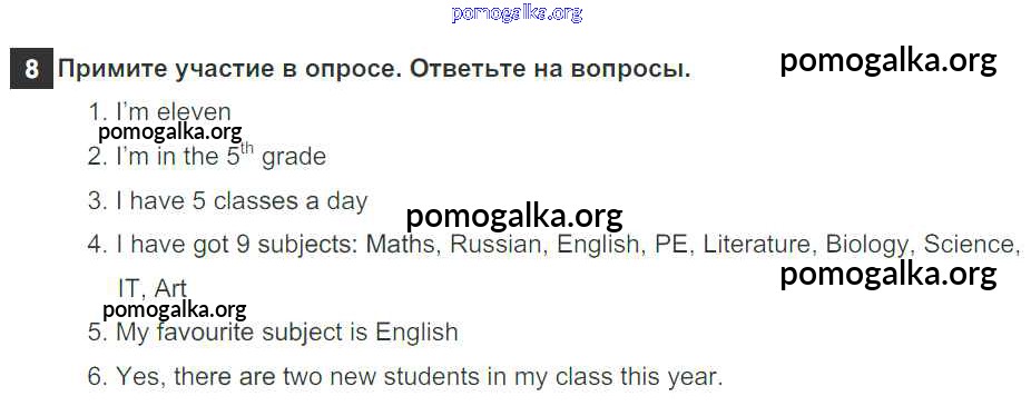 Готовые ответы - Английский язык 5 класс рабочая тетрадь Enjoy English Биболетова М.З. - exercise unit 1 8