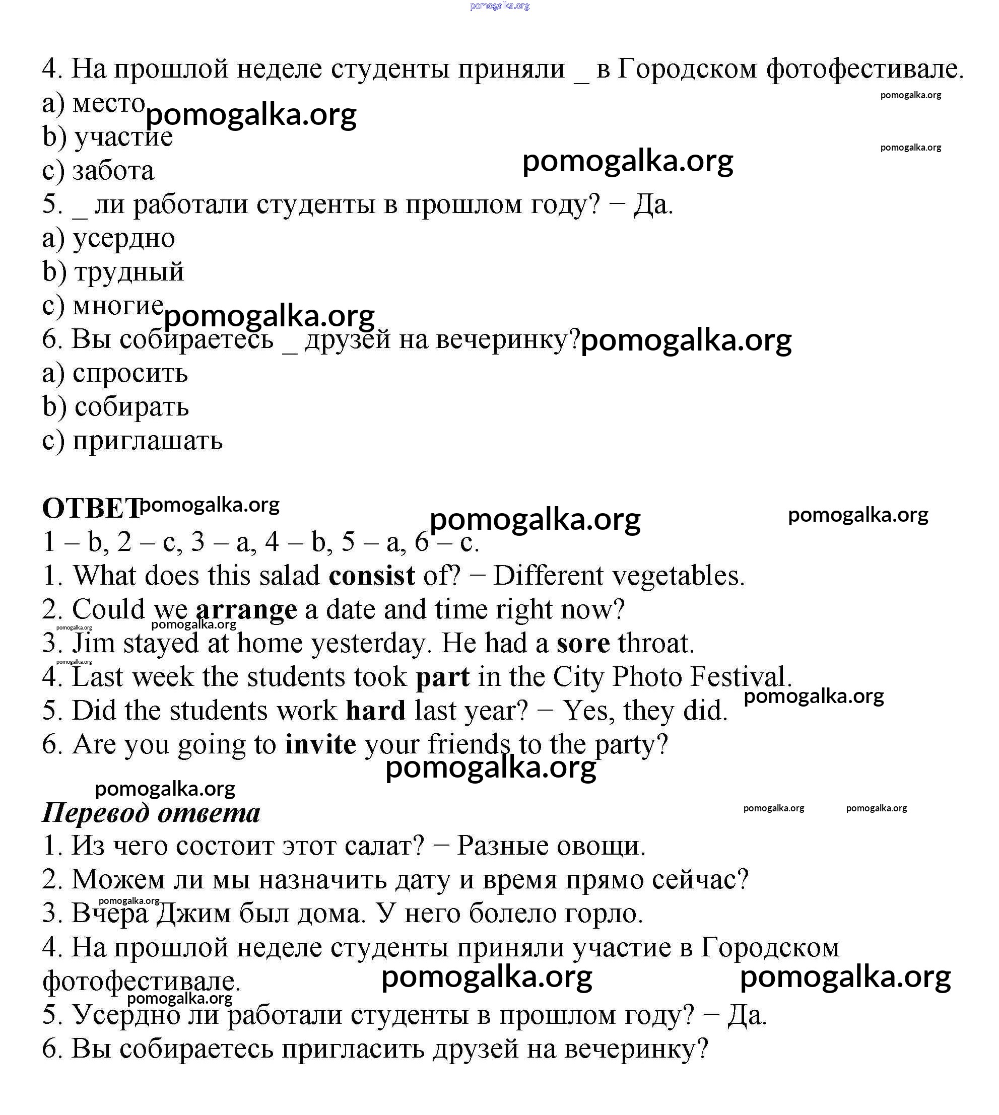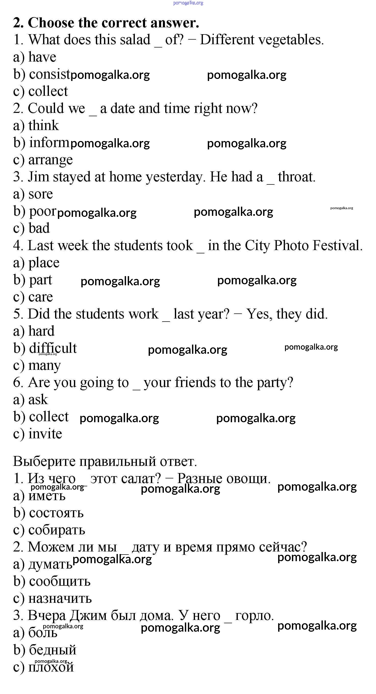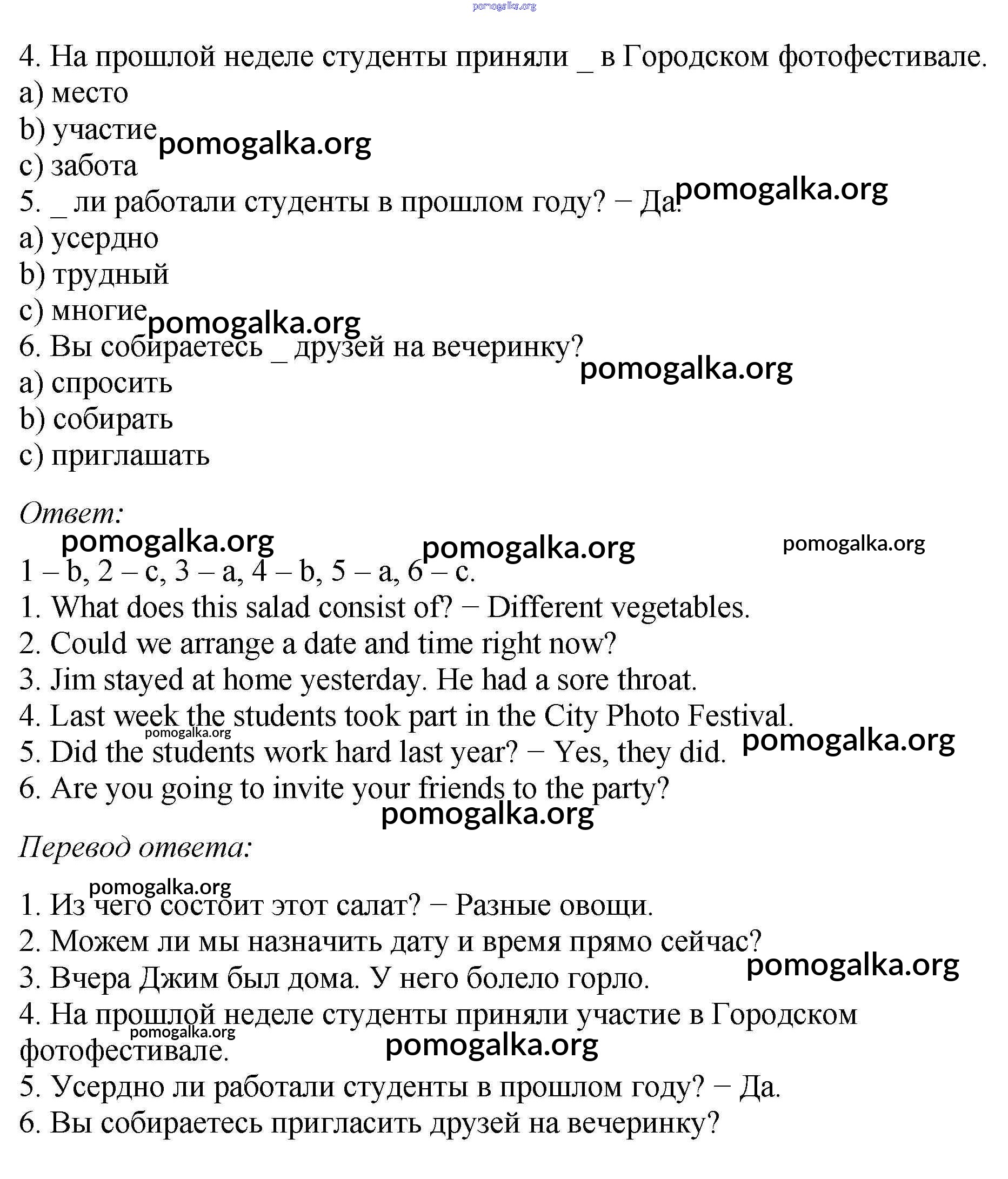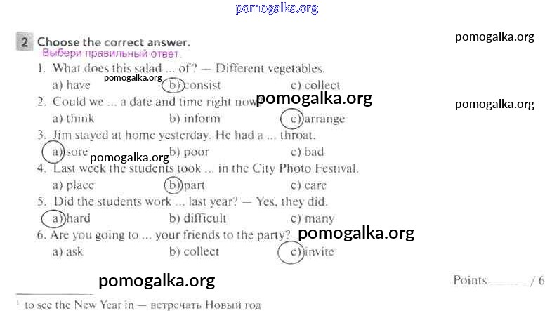 Готовые ответы - Английский язык 5 класс рабочая тетрадь Enjoy English Биболетова М.З. - variant 1 test 2