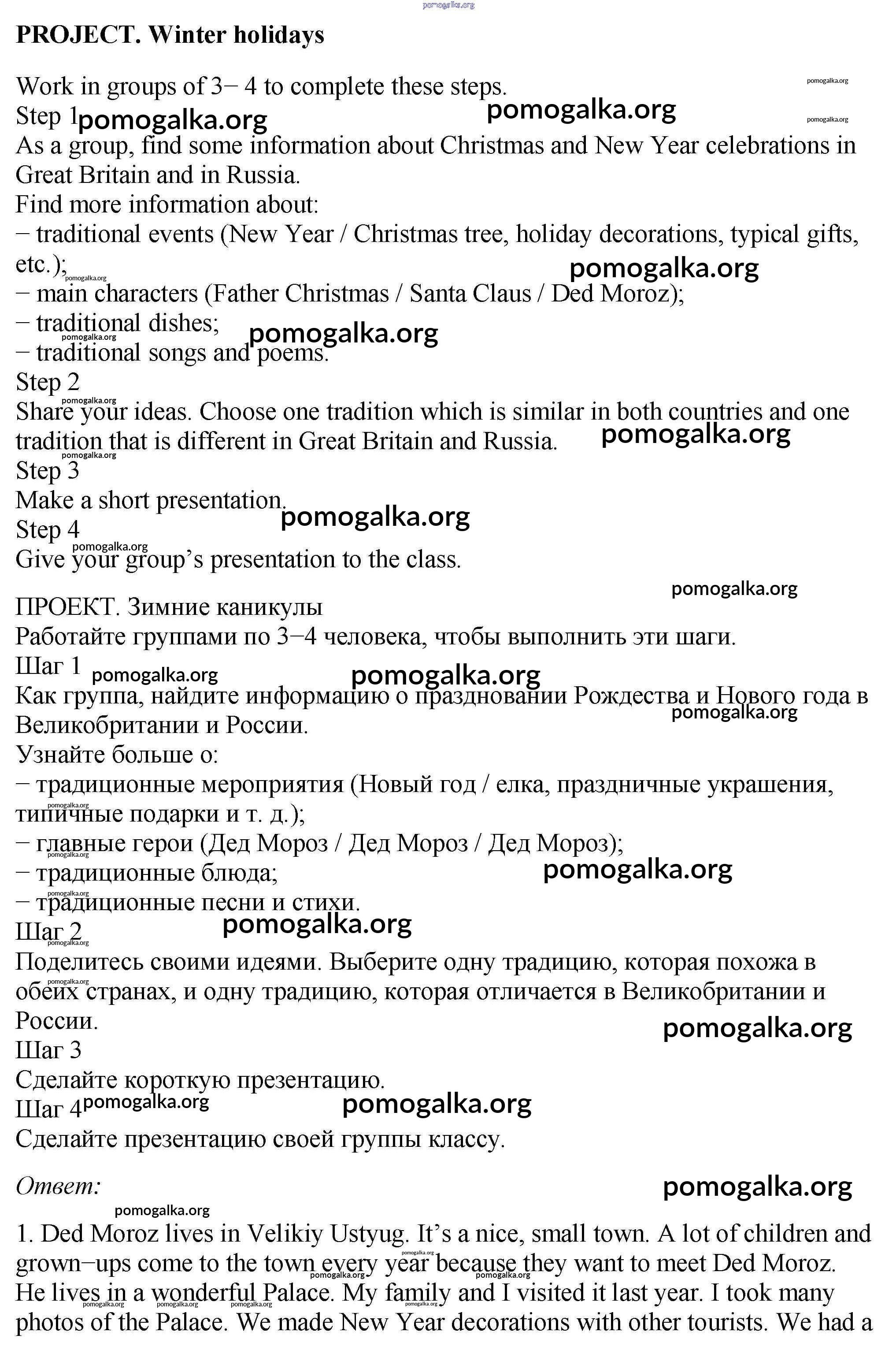 Готовые ответы - Английский язык 5 класс рабочая тетрадь Enjoy English Биболетова М.З. - project unit 2 1