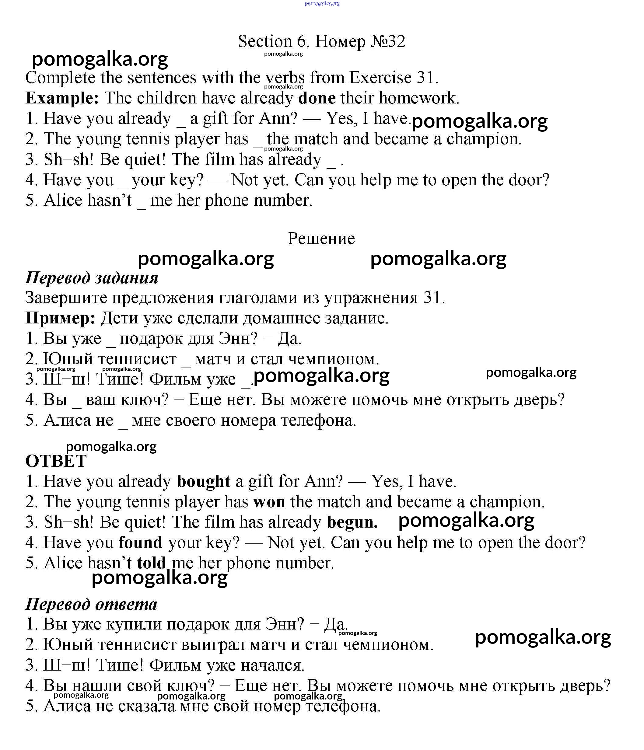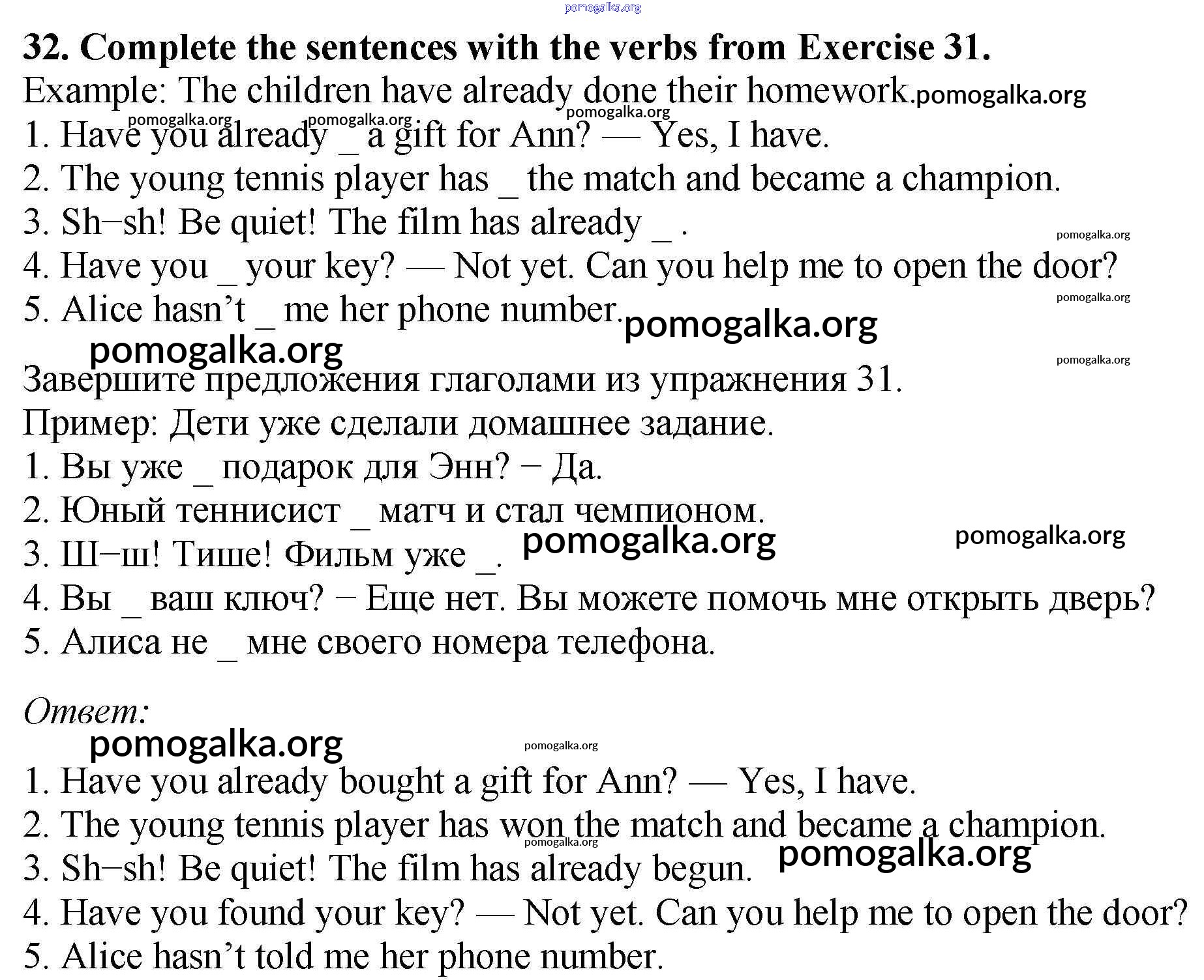 Готовые ответы - Английский язык 5 класс рабочая тетрадь Enjoy English Биболетова М.З. - exercise unit 3 32