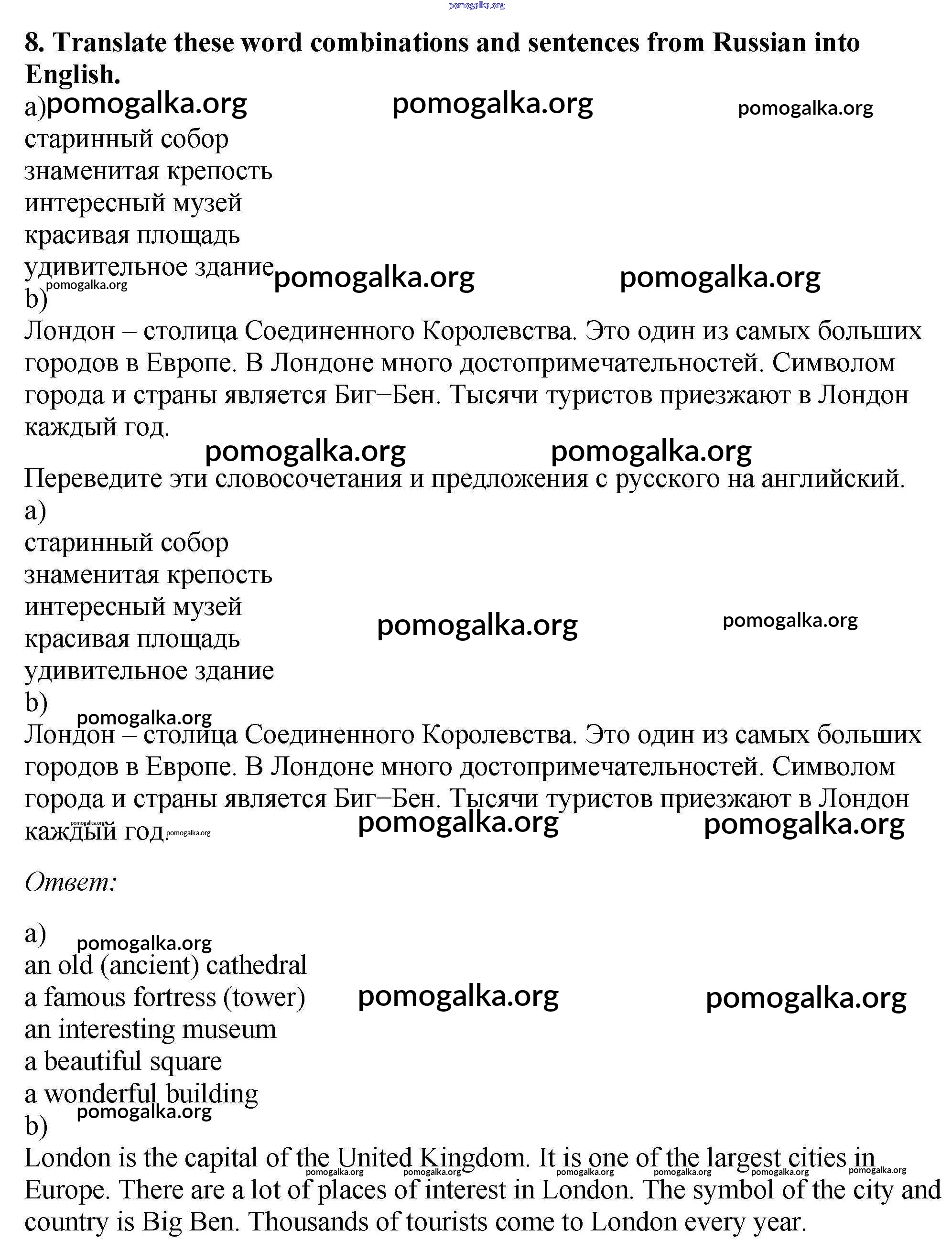 Готовые ответы - Английский язык 5 класс рабочая тетрадь Enjoy English Биболетова М.З. - exercise unit 3 8