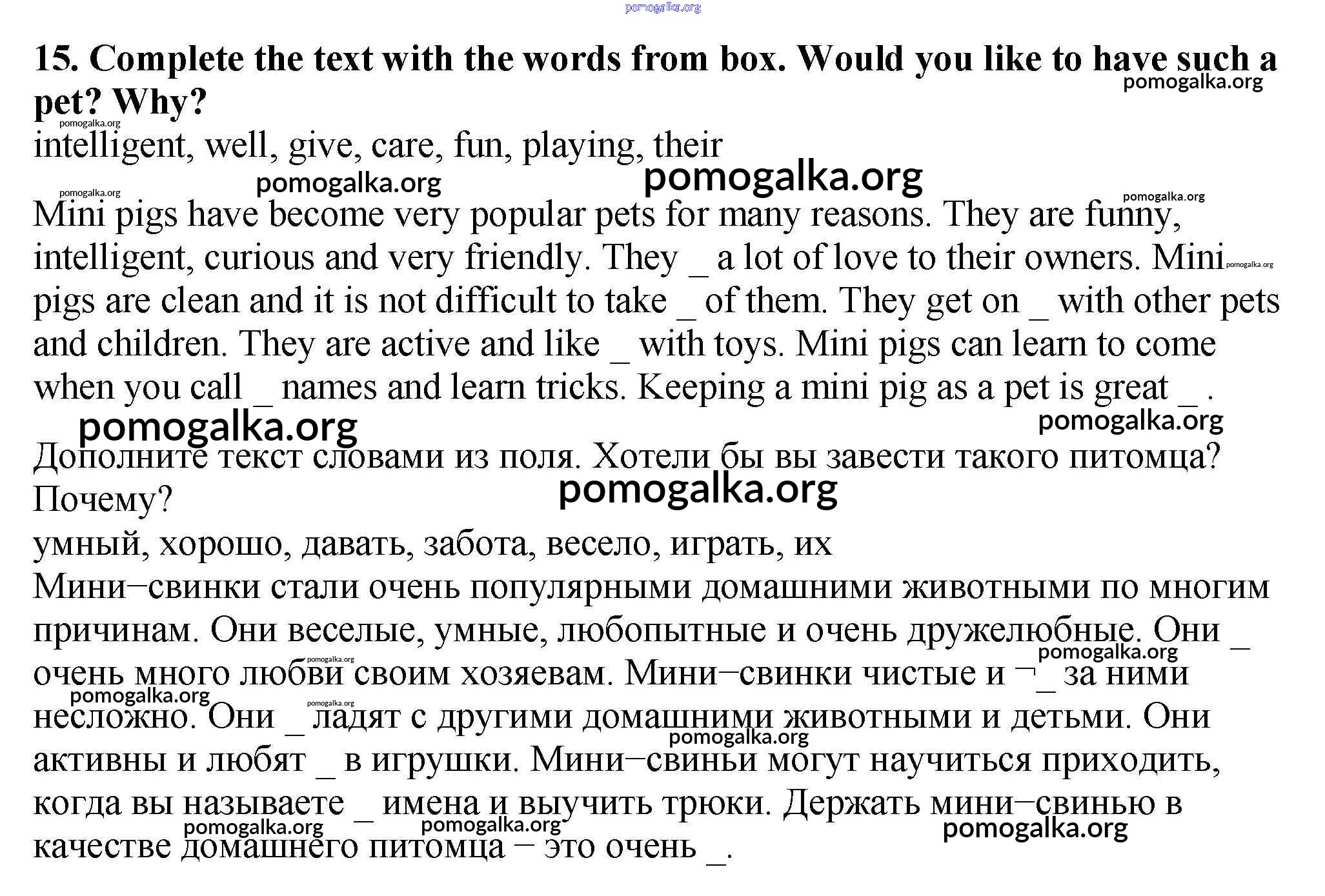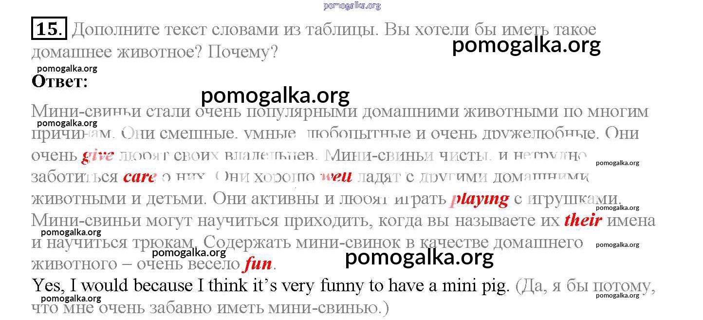 Готовые ответы - Английский язык 5 класс рабочая тетрадь Enjoy English Биболетова М.З. - exercise unit 4 15