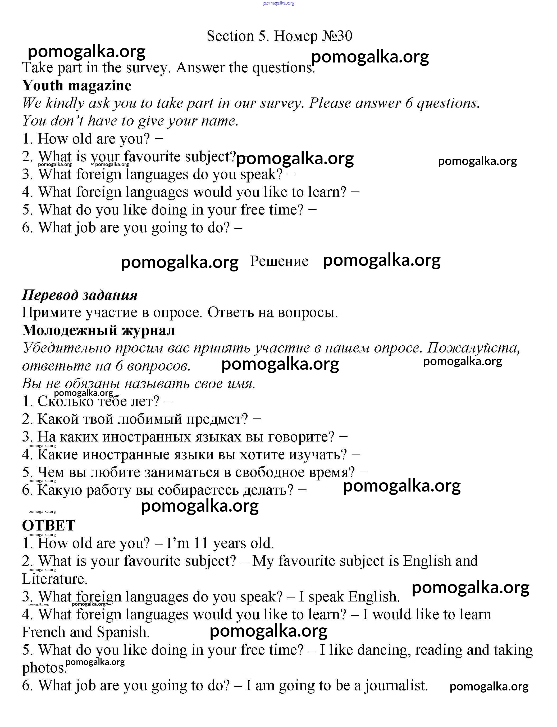 Готовые ответы - Английский язык 5 класс рабочая тетрадь Enjoy English Биболетова М.З. - exercise unit 4 30