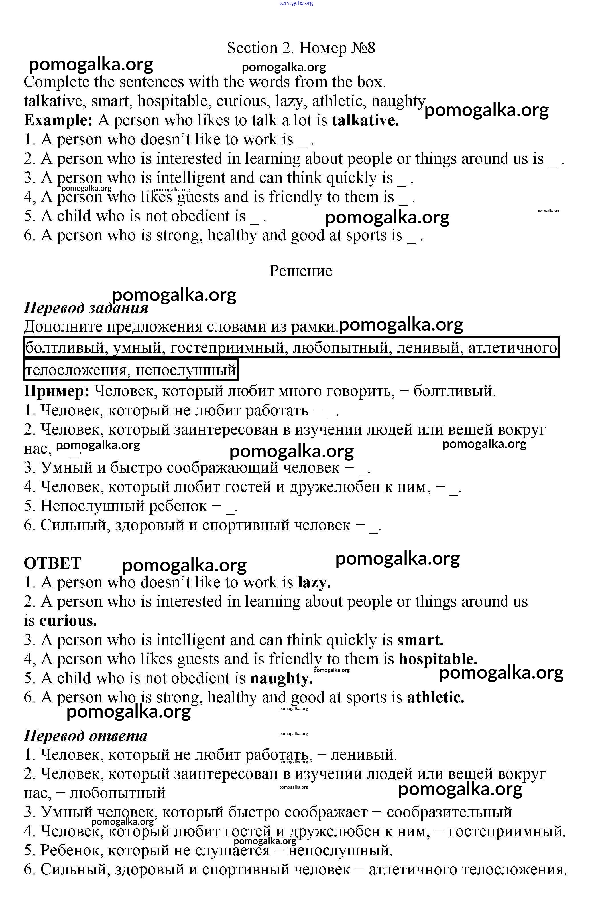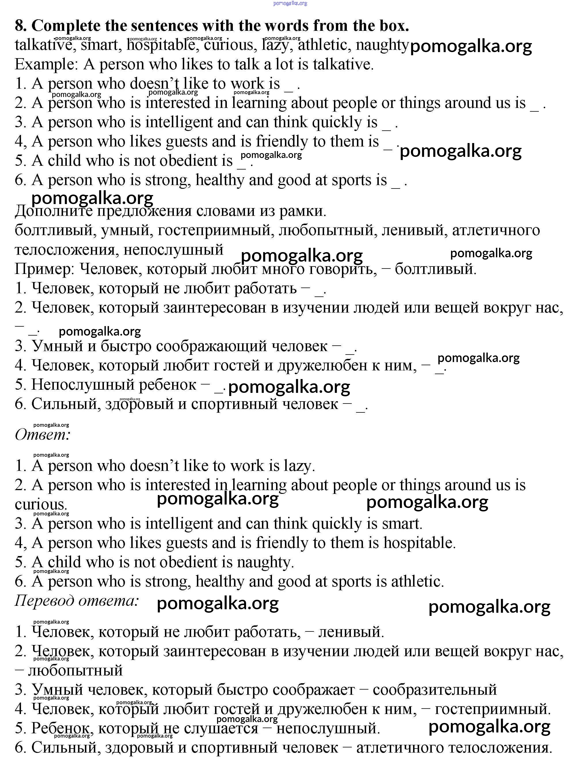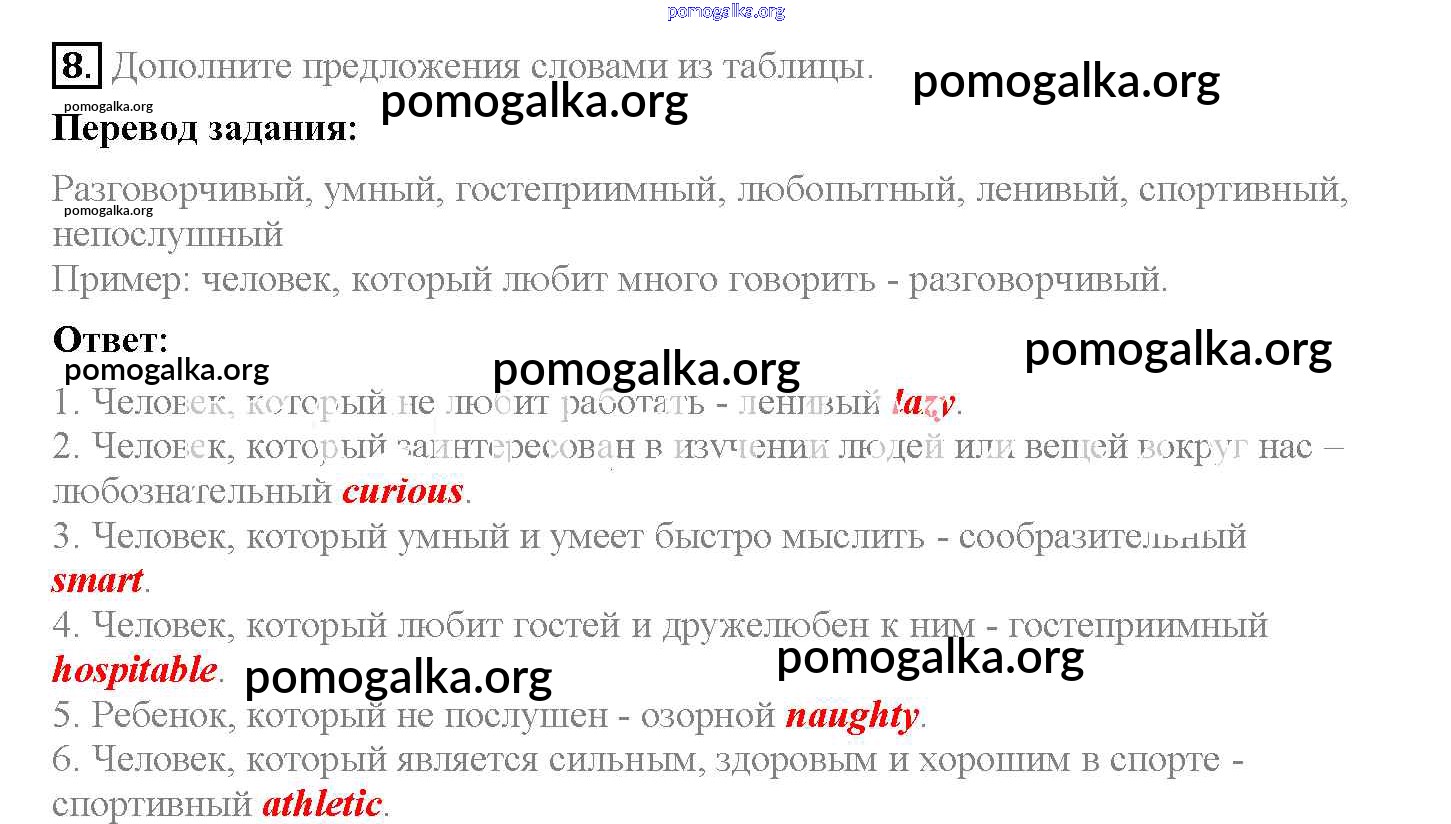 Готовые ответы - Английский язык 5 класс рабочая тетрадь Enjoy English Биболетова М.З. - exercise unit 4 8
