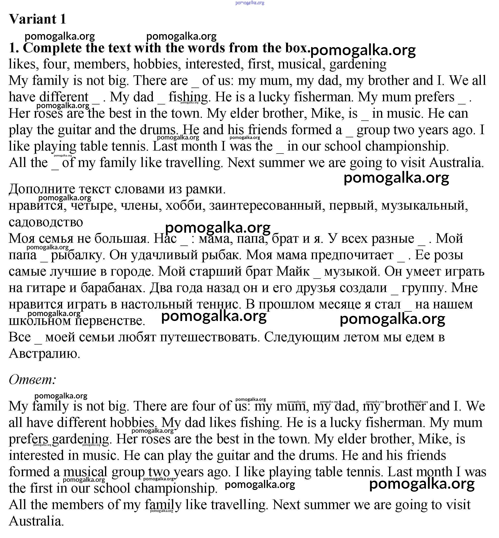 Готовые ответы - Английский язык 5 класс рабочая тетрадь Enjoy English Биболетова М.З. - variant 1 test 1