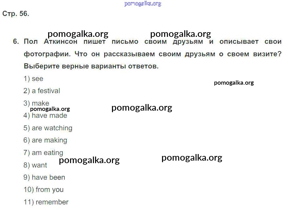 Готовые ответы - Английский язык 5 класс рабочая тетрадь Кузовлев В.П. - unit 4 56