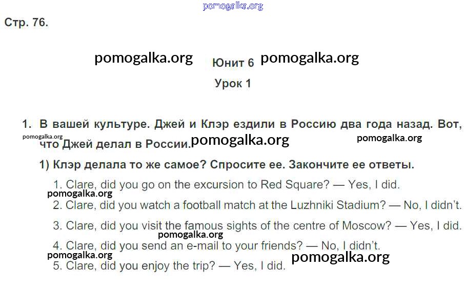 Готовые ответы - Английский язык 5 класс рабочая тетрадь Кузовлев В.П. - unit 6 76