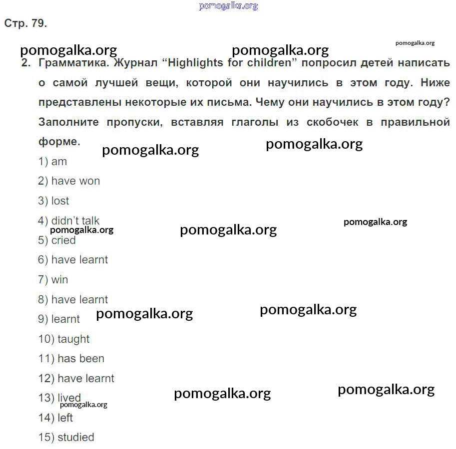 Готовые ответы - Английский язык 5 класс рабочая тетрадь Кузовлев В.П. - unit 6 79