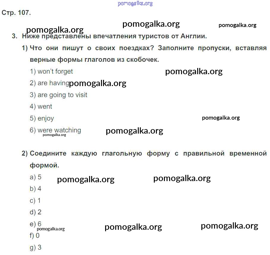 Готовые ответы - Английский язык 5 класс рабочая тетрадь Кузовлев В.П. - unit 8 107