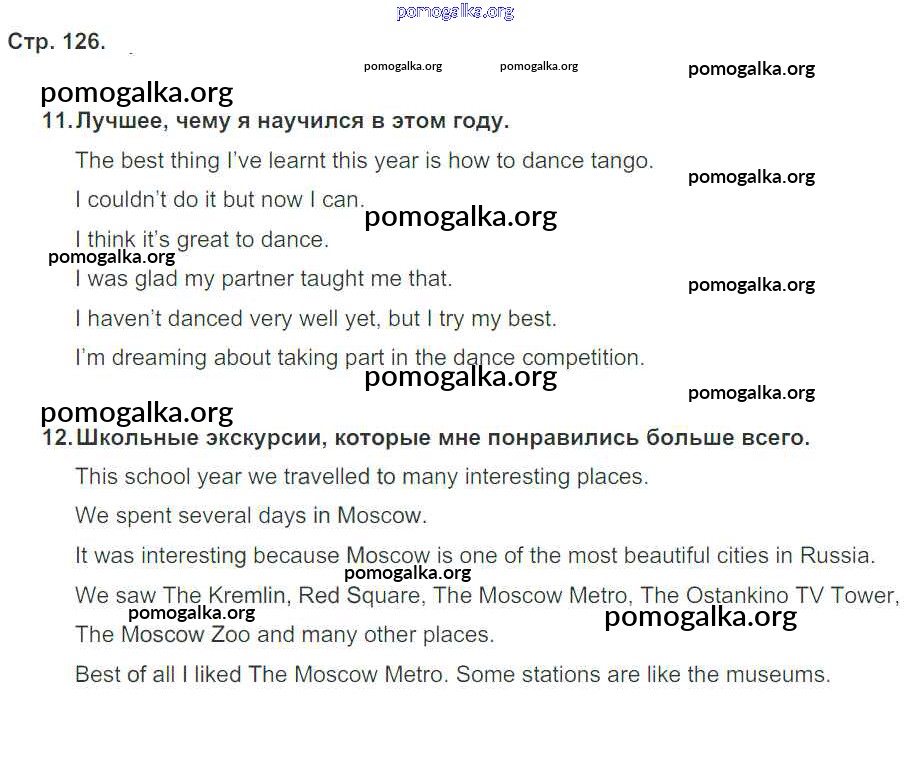 Готовые ответы - Английский язык 5 класс рабочая тетрадь Кузовлев В.П. - unit 8 126