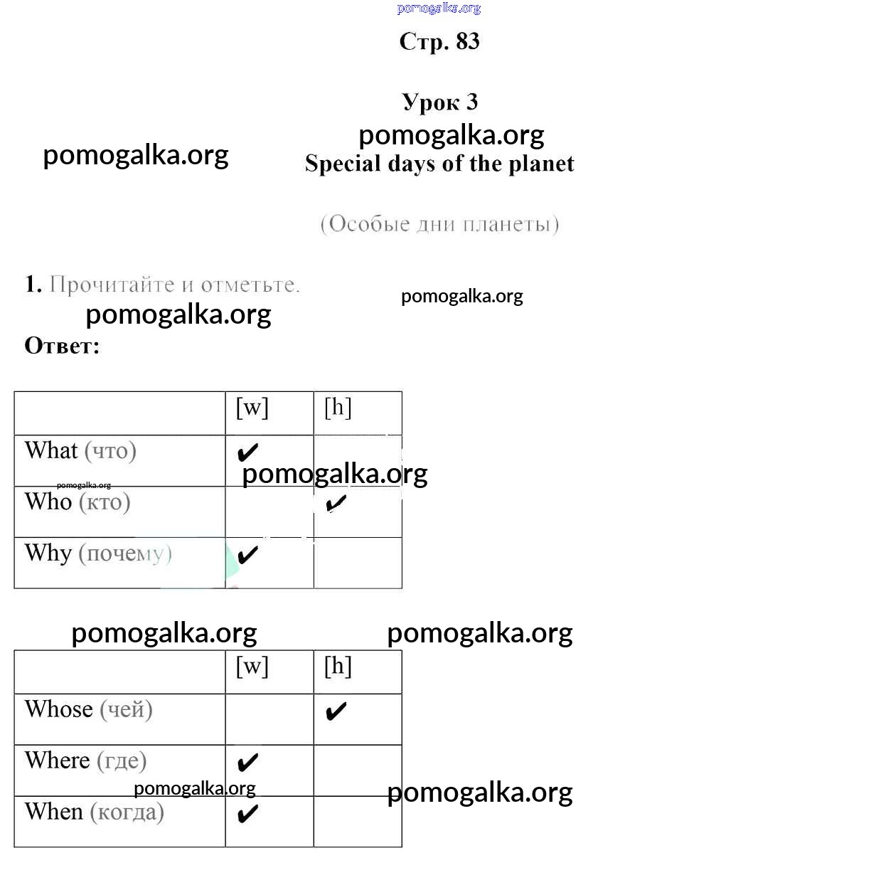 Готовые ответы - Английский язык 5 класс рабочая тетрадь Лапицкая Л.М. - часть 1. страница 83