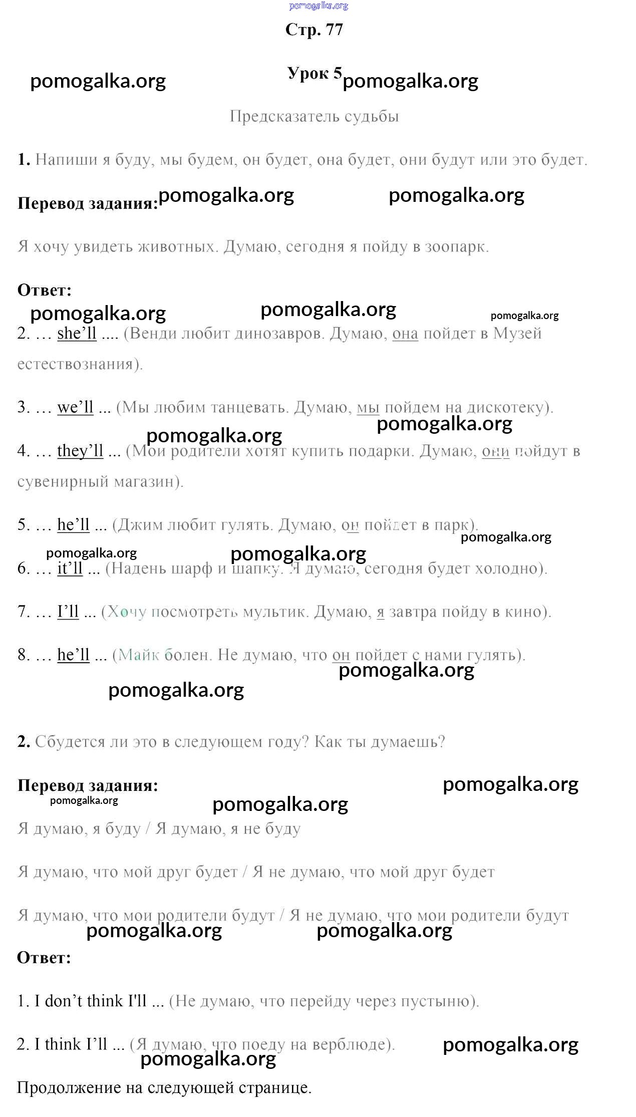 Готовые ответы - Английский язык 5 класс рабочая тетрадь Лапицкая Л.М. - часть 2. страница 77