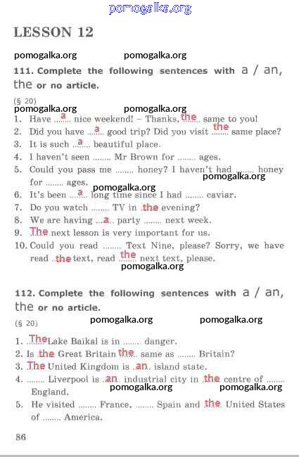 Готовые ответы - Английский язык 5 класс Сборник упражнений Барашкова Е.А. (к уч. Верещагиной) - lesson 12 часть 1 стр. 86