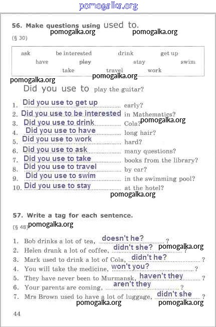 Готовые ответы - Английский язык 5 класс Сборник упражнений Барашкова Е.А. (к уч. Верещагиной) - lesson 6 часть 1 стр. 44