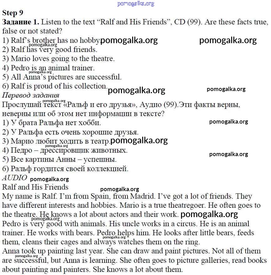 Готовые ответы - Английский язык 5 класс Rainbow English Афанасьева О.В. - step 9 unit 4 1