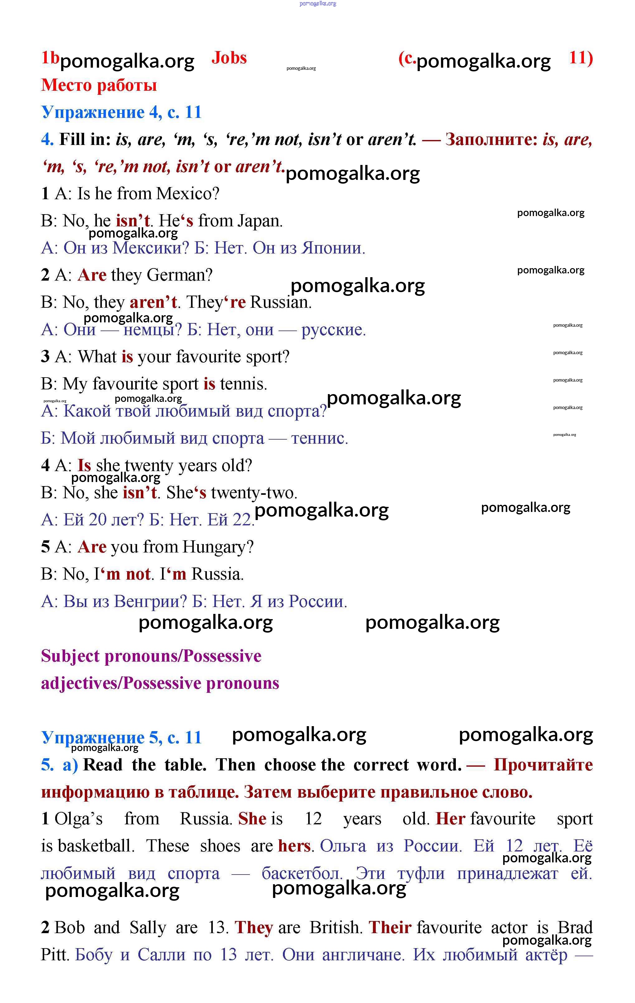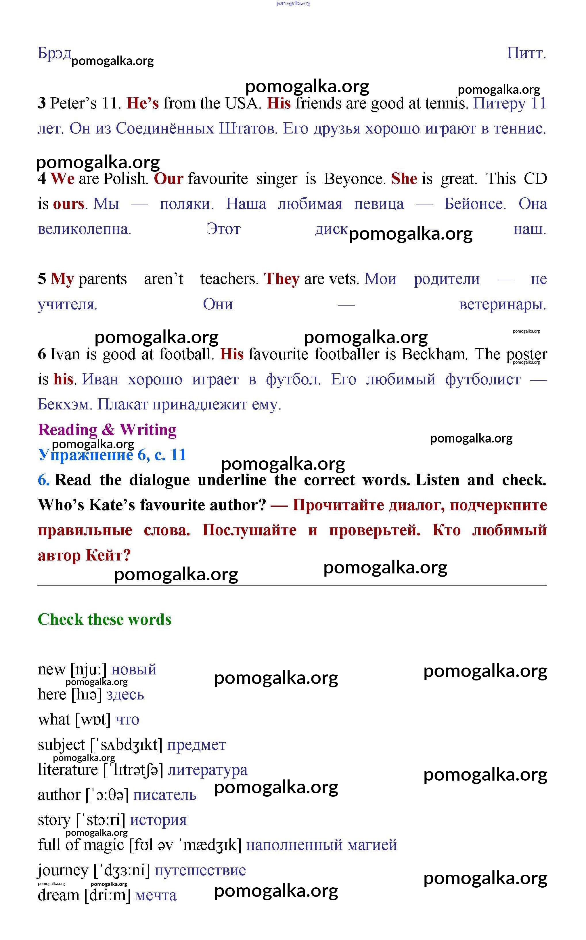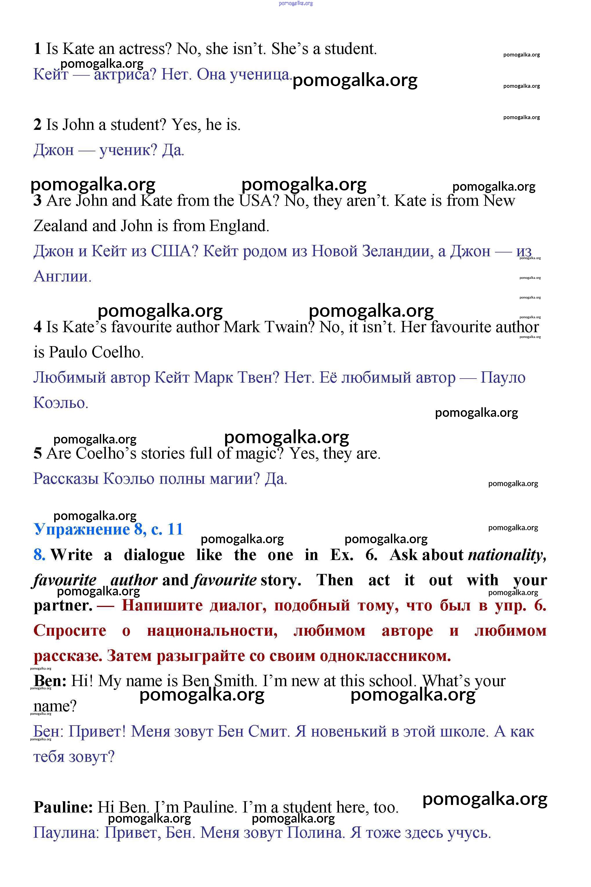 Готовые ответы - Английский язык 5 класс Starlight Баранова - module 1 11