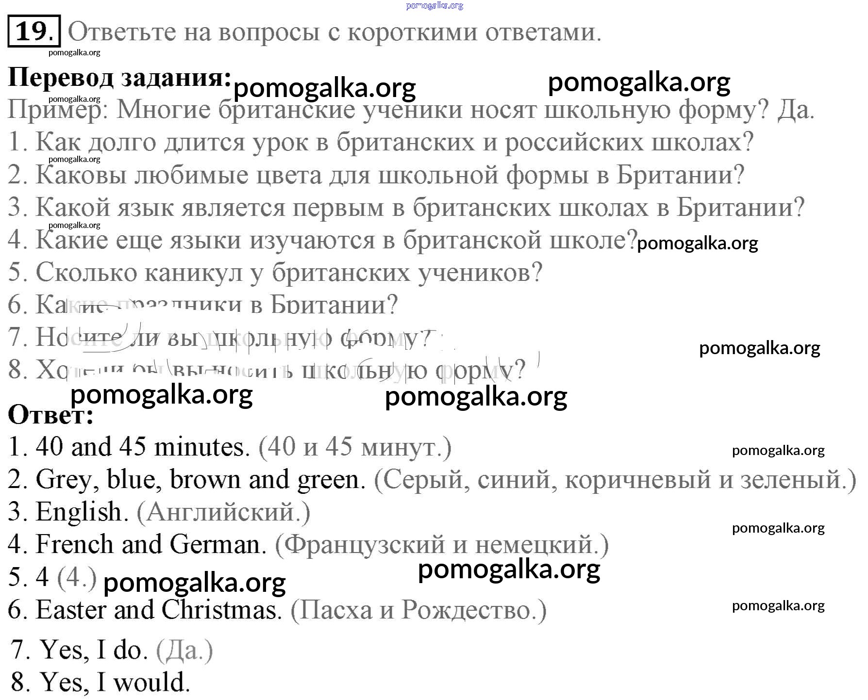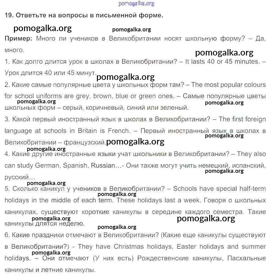 Готовые ответы - Английский язык 5 класс Enjoy English Биболетова М.З. - домашняя работа unit 1 19