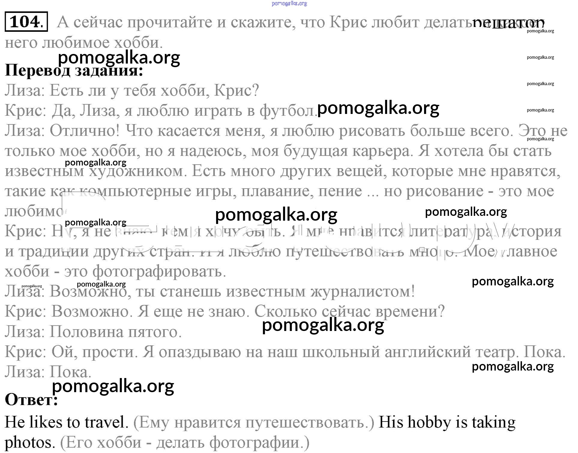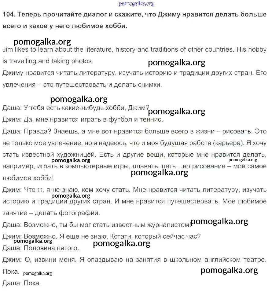 Готовые ответы - Английский язык 5 класс Enjoy English Биболетова М.З. - unit 1 104