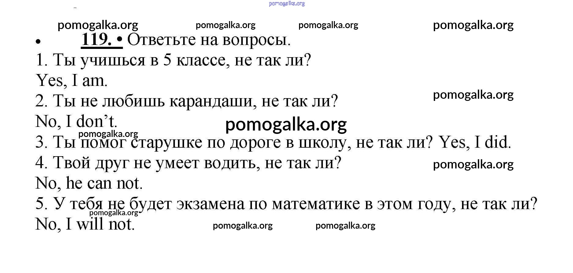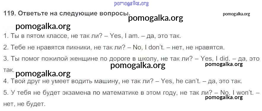 Готовые ответы - Английский язык 5 класс Enjoy English Биболетова М.З. - unit 1 119