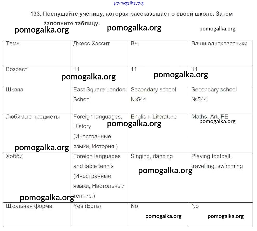 Готовые ответы - Английский язык 5 класс Enjoy English Биболетова М.З. - unit 1 133