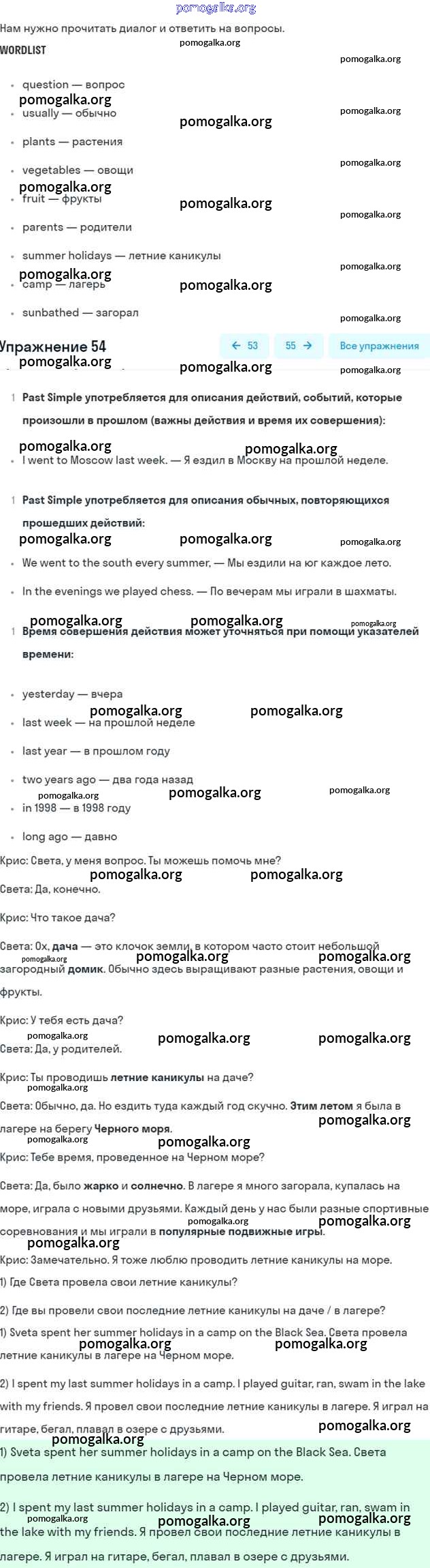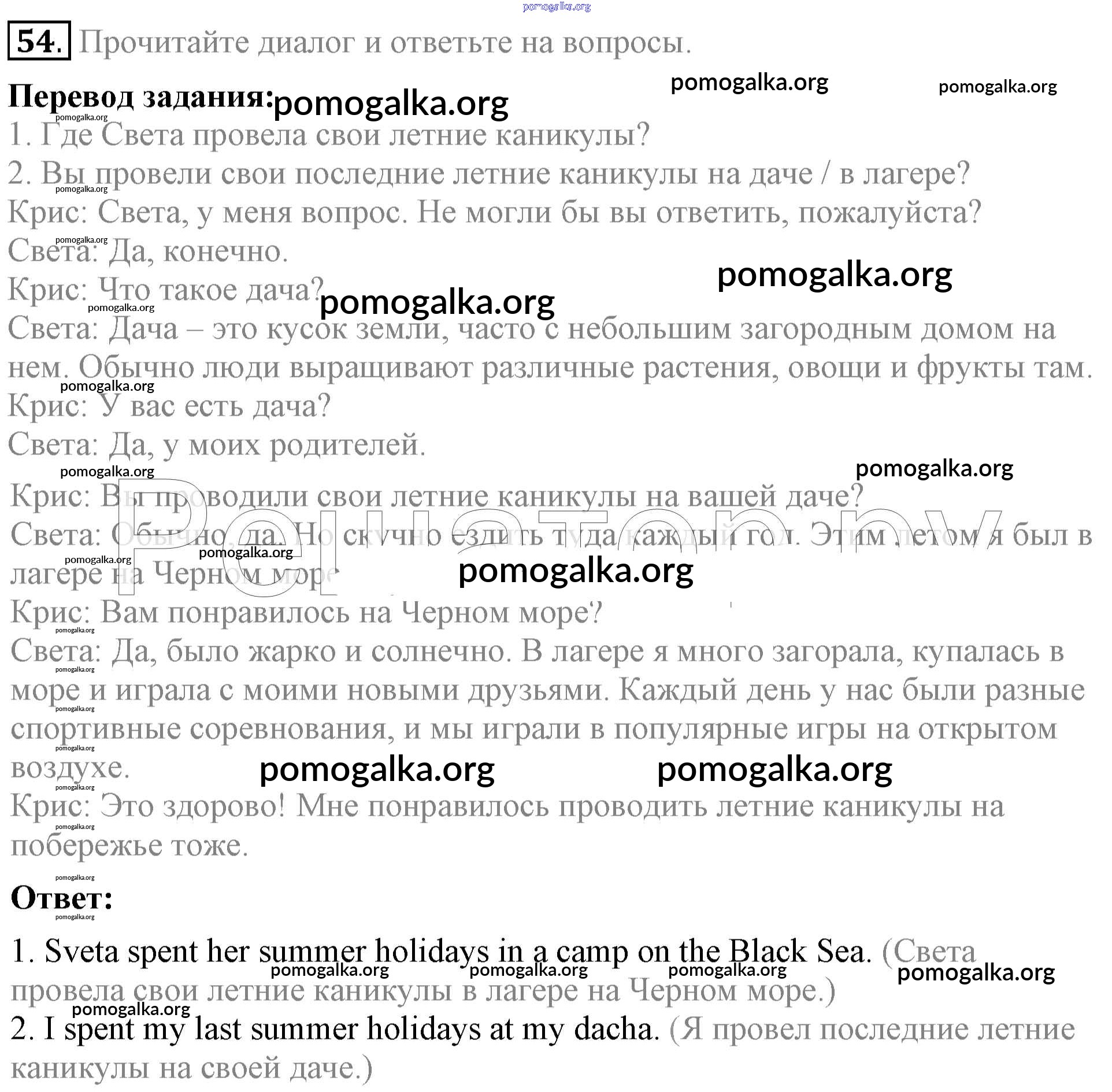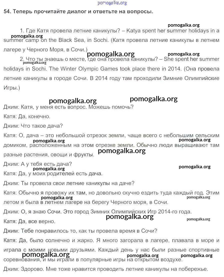 Готовые ответы - Английский язык 5 класс Enjoy English Биболетова М.З. - unit 1 54