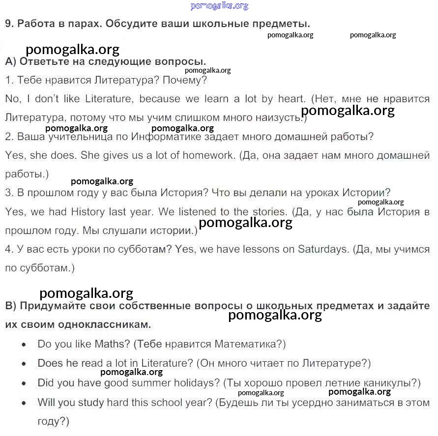 Готовые ответы - Английский язык 5 класс Enjoy English Биболетова М.З. - unit 1 9