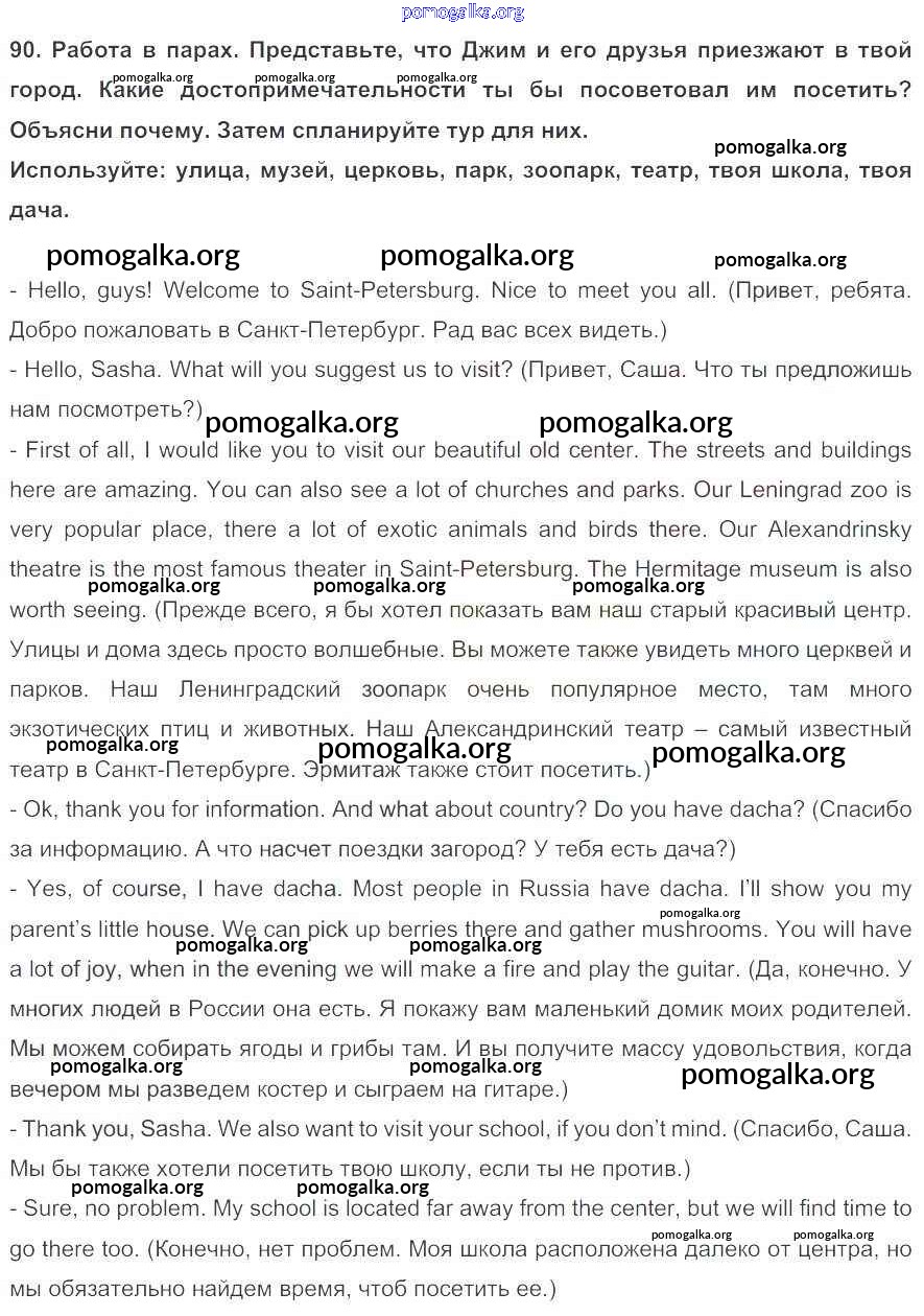 Готовые ответы - Английский язык 5 класс Enjoy English Биболетова М.З. - unit 1 90